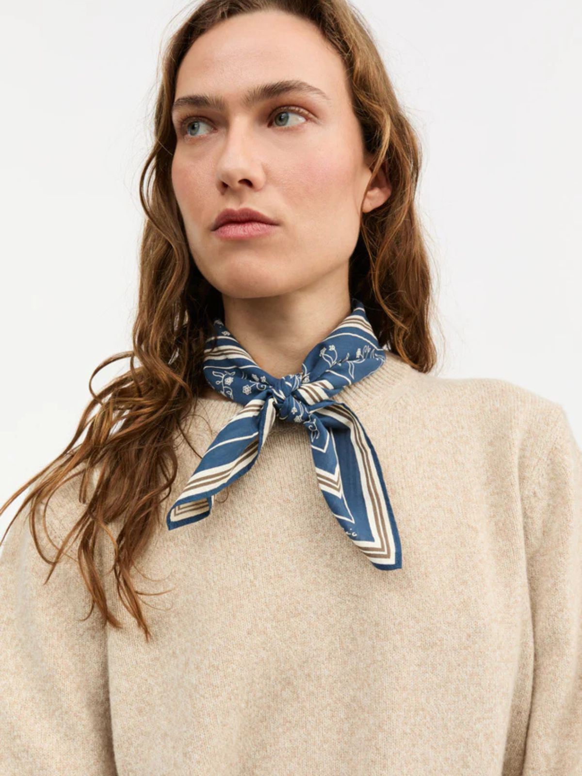 Feminin bandage tørklæde fra SKALL i ren økologisk bomuldsvoile i smukt mønster samt farver.Brug det rundt om halsen eller i håret.