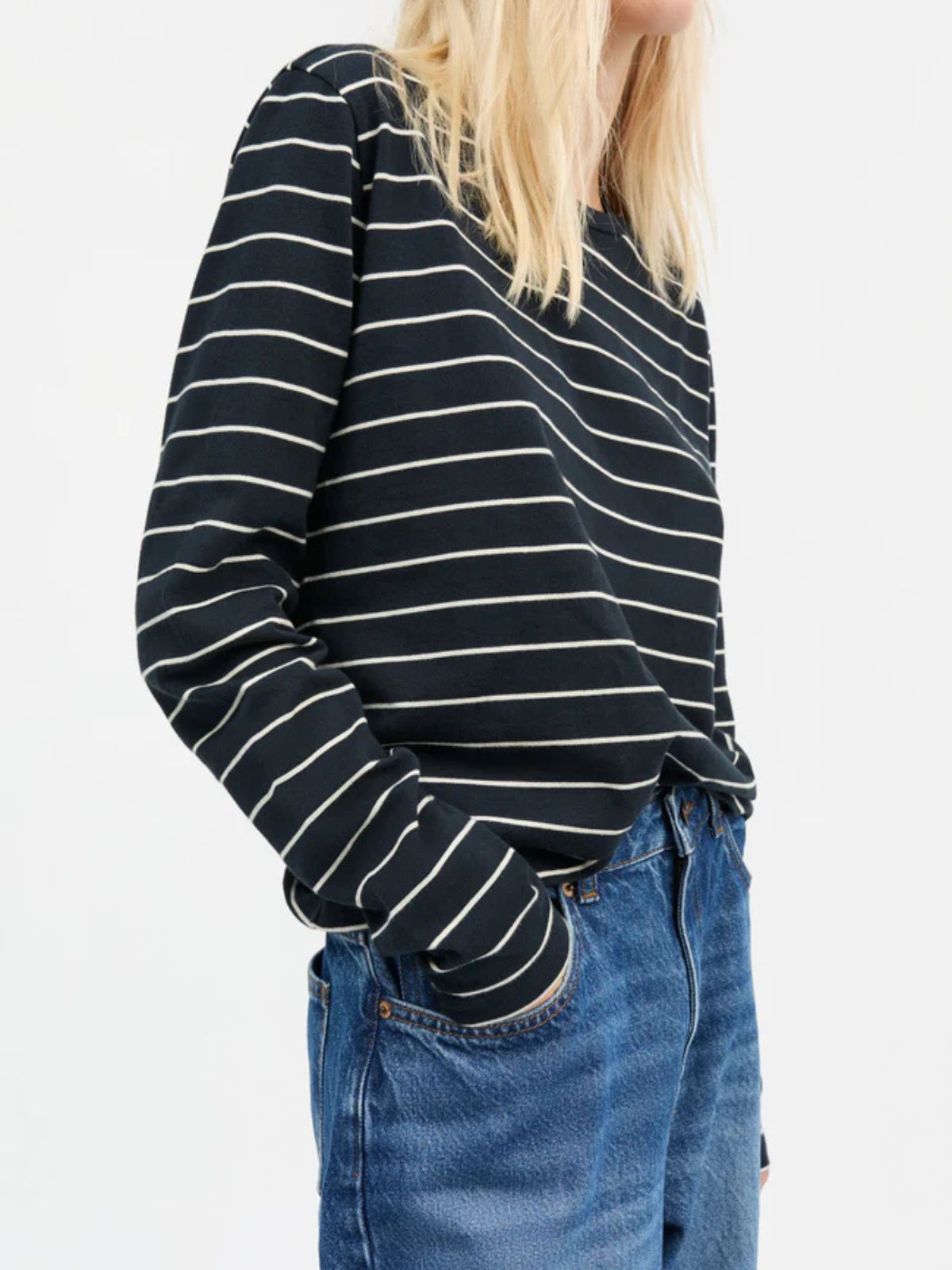 Langærmet strik bluse fra SKALL i kraftig 100% økologisk bomuldsjersey. Strikken har en løs pasform, et lige snit og en rund hals med ribkant.Længde: ca. 56 cm målt i str. L