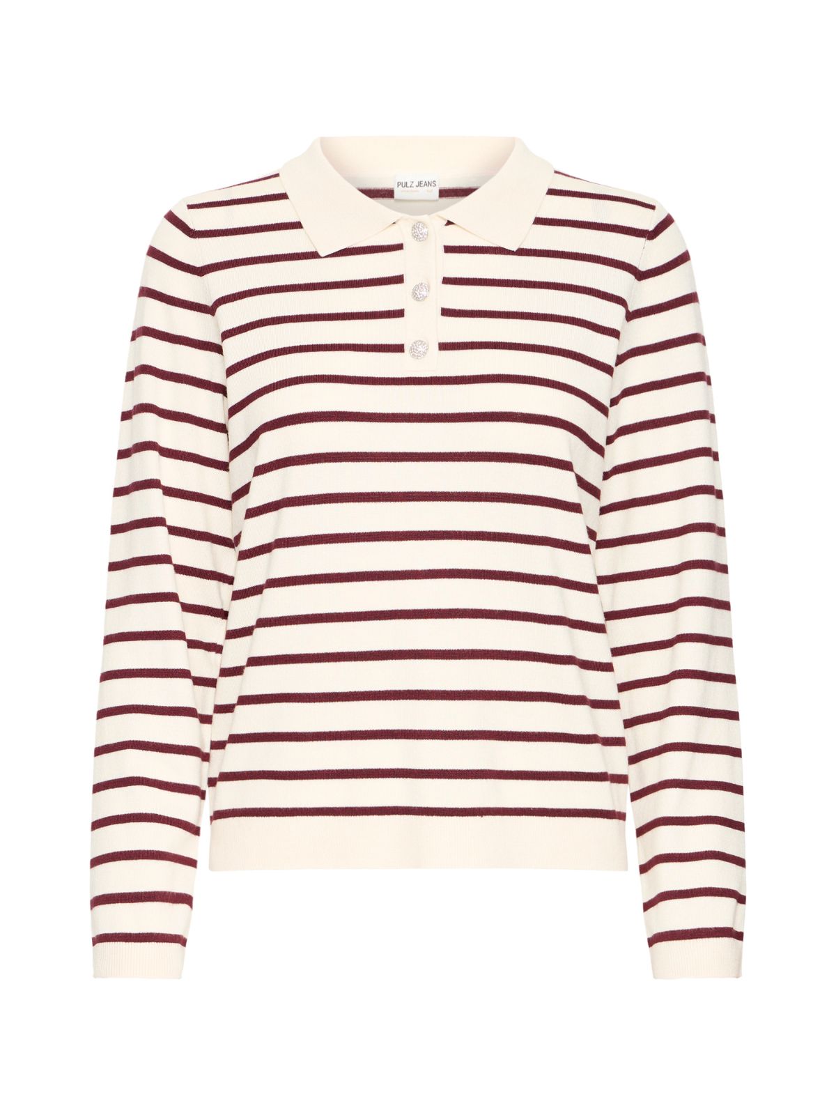 Stribet bluse fra Pulz Jeans. Blusen har krave, lange ærmer og knaplukning på øverste del.Materiale: 80% Viskose, 20% Polyestere