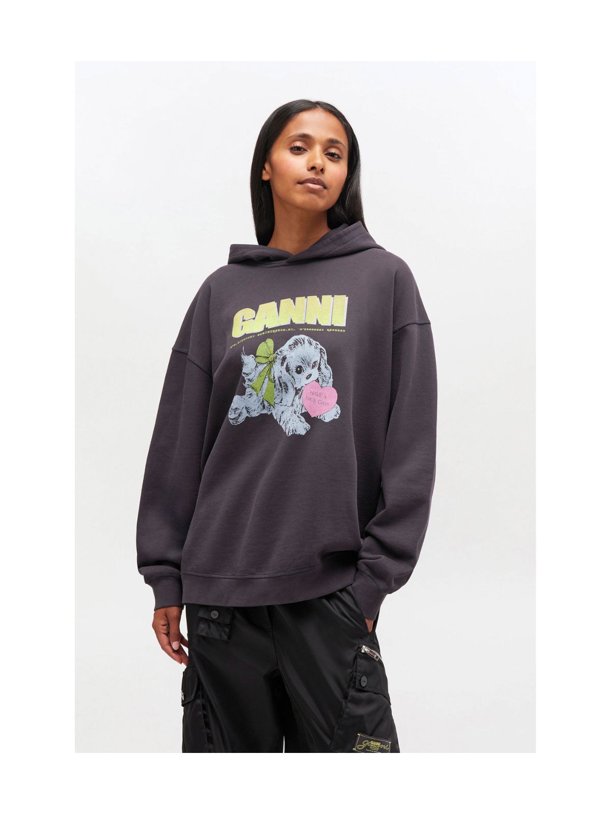 Oversize hættetrøje fra Ganni. Hættetrøjen har lange ærmer, hætte og et print på fronten. Modellen er 176 cm høj og har en størrelse S/M på.Materiale: 100% Økologisk bomuld