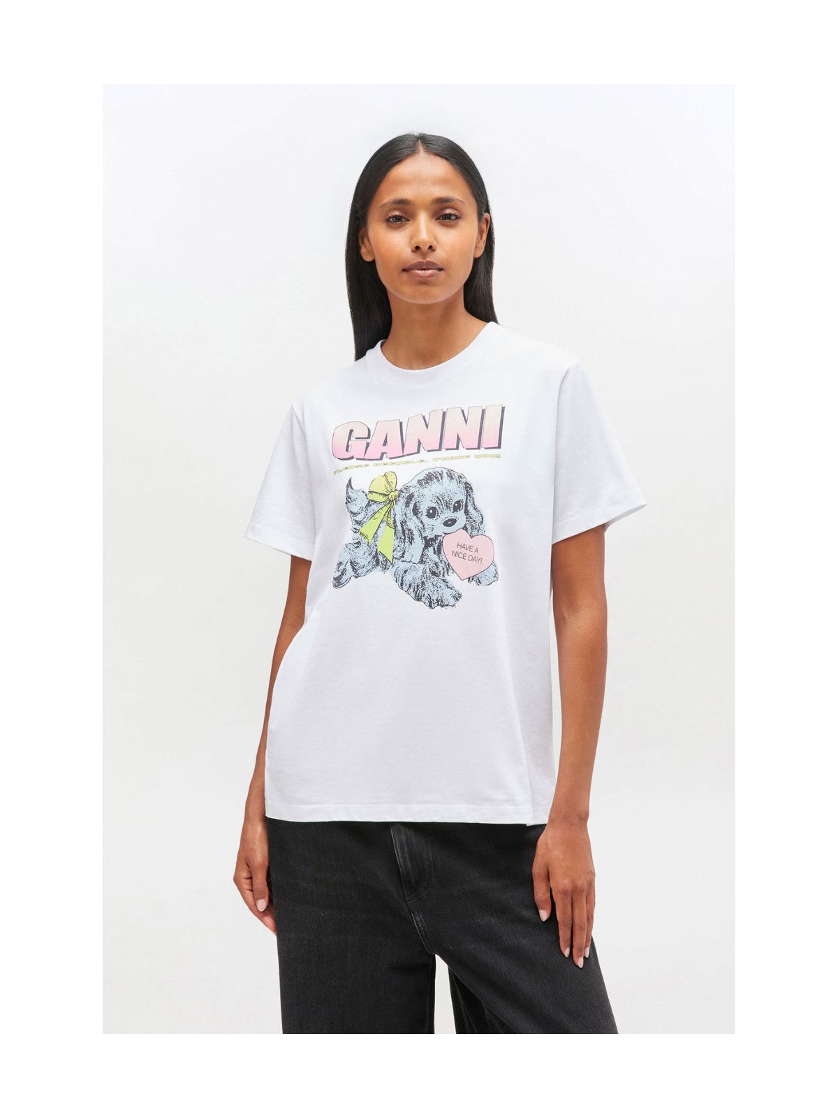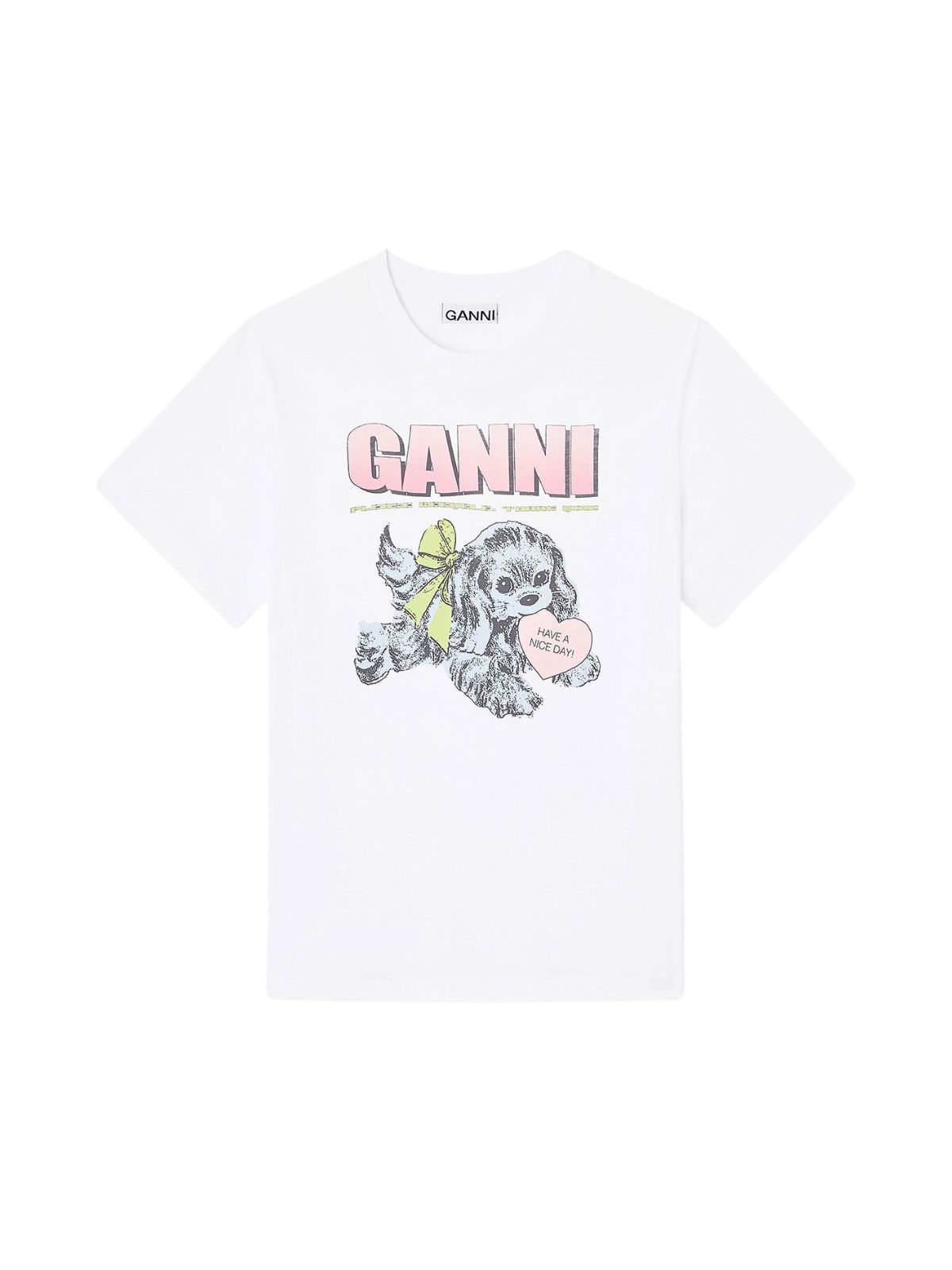 Oversize t-shirt fra Ganni. T-shirten har en rund halsudskæring, korte ærmer og et print på fronten.Materiale: 100% Økologisk bomuld