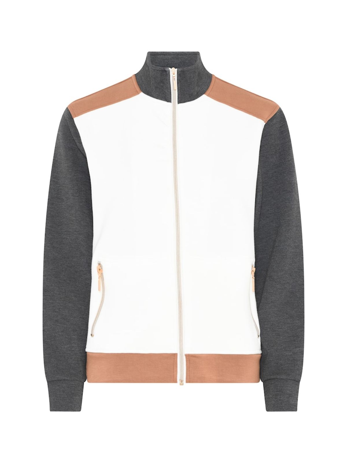 Sporty trøje fra Micha. Trøjen har lynlåslukning langs fronten, høj hals og lange ærmer samt sidelommer med lynlåslukning.Materiale: 49% Polyester, 45% Viskose, 6% Elastan