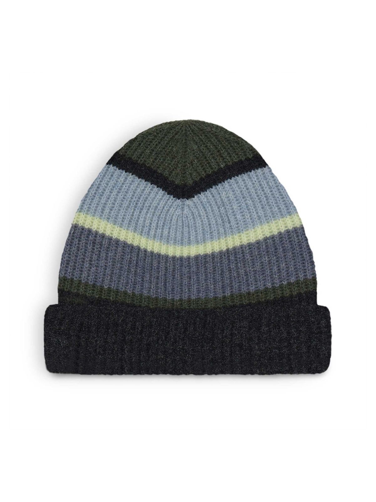 Strikket hue med opsmøg i skønne farver fra Mansted.Materiale: 100% Lammeuld