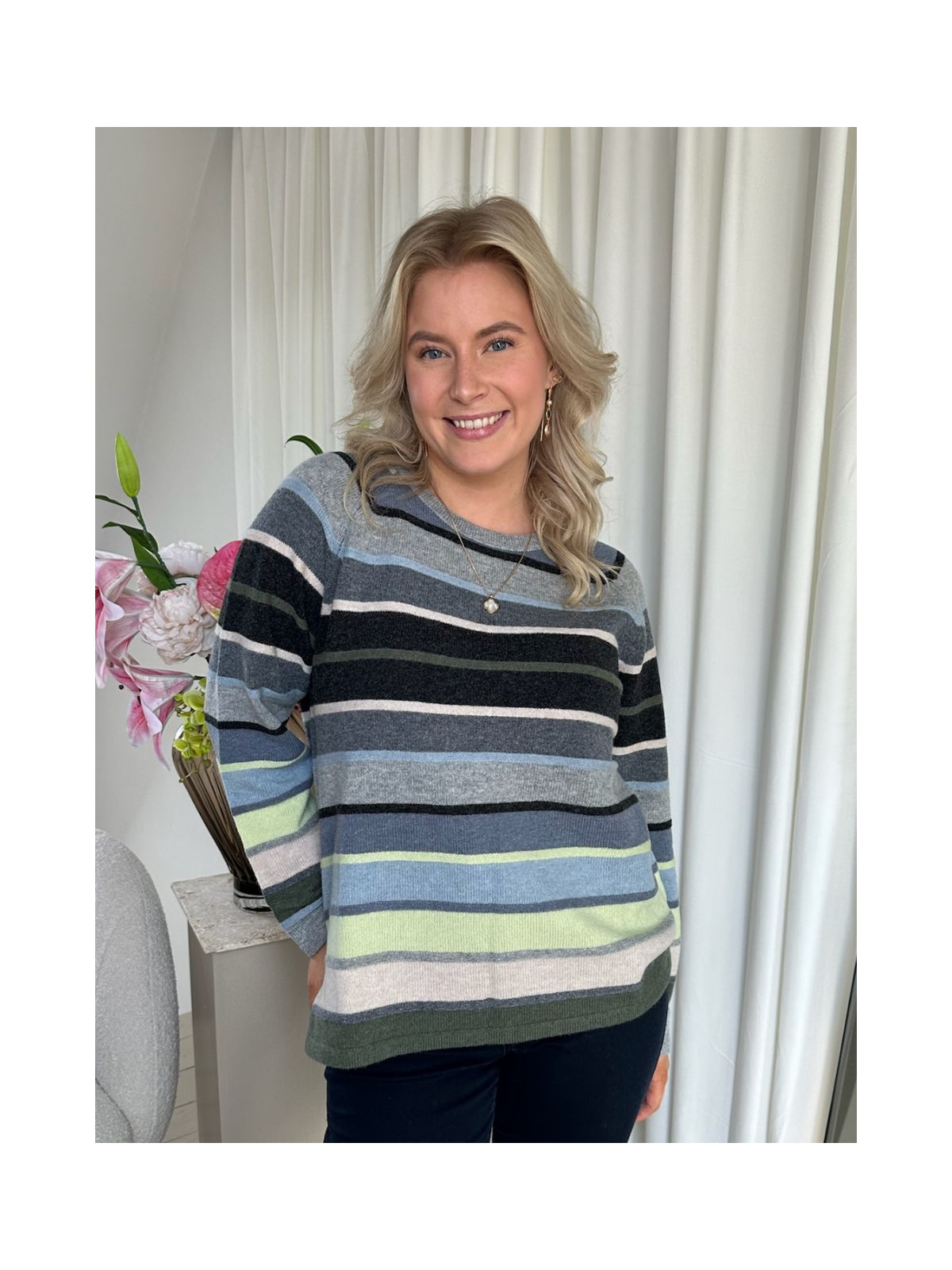 Stribet strik fra Mansted. Strikken har lange ærmer, rund halsudskæring, vandrette stribe i forskellige farver og et regulært fit.Materiale: 100% Lammeuld