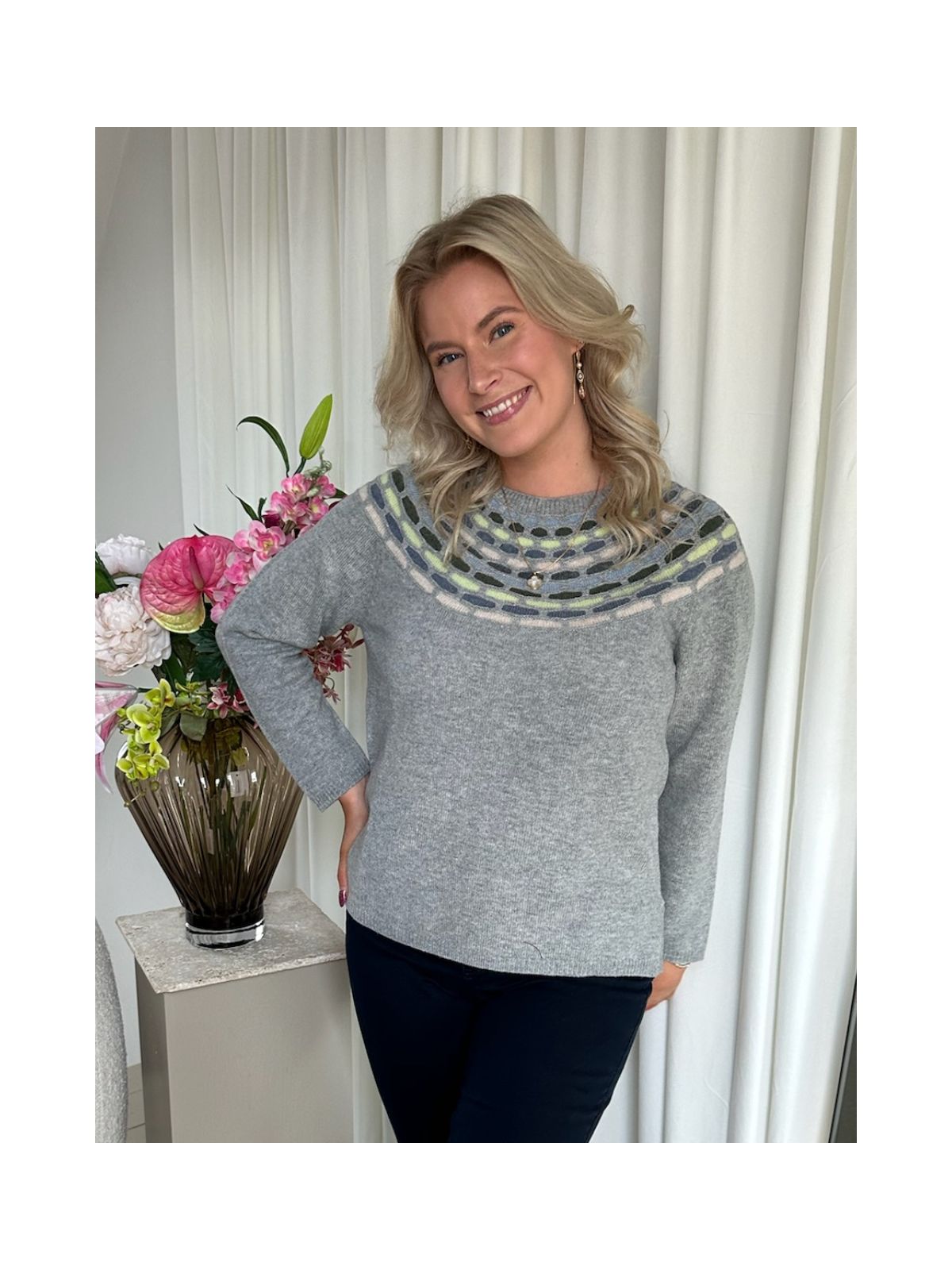 Skøn strik fra Mansted. Strikken har en rund halsudskæring, lange ærmer, regulær pasform og fine detaljer ved halsudskæringen.Materiale: 100% Lammeuld