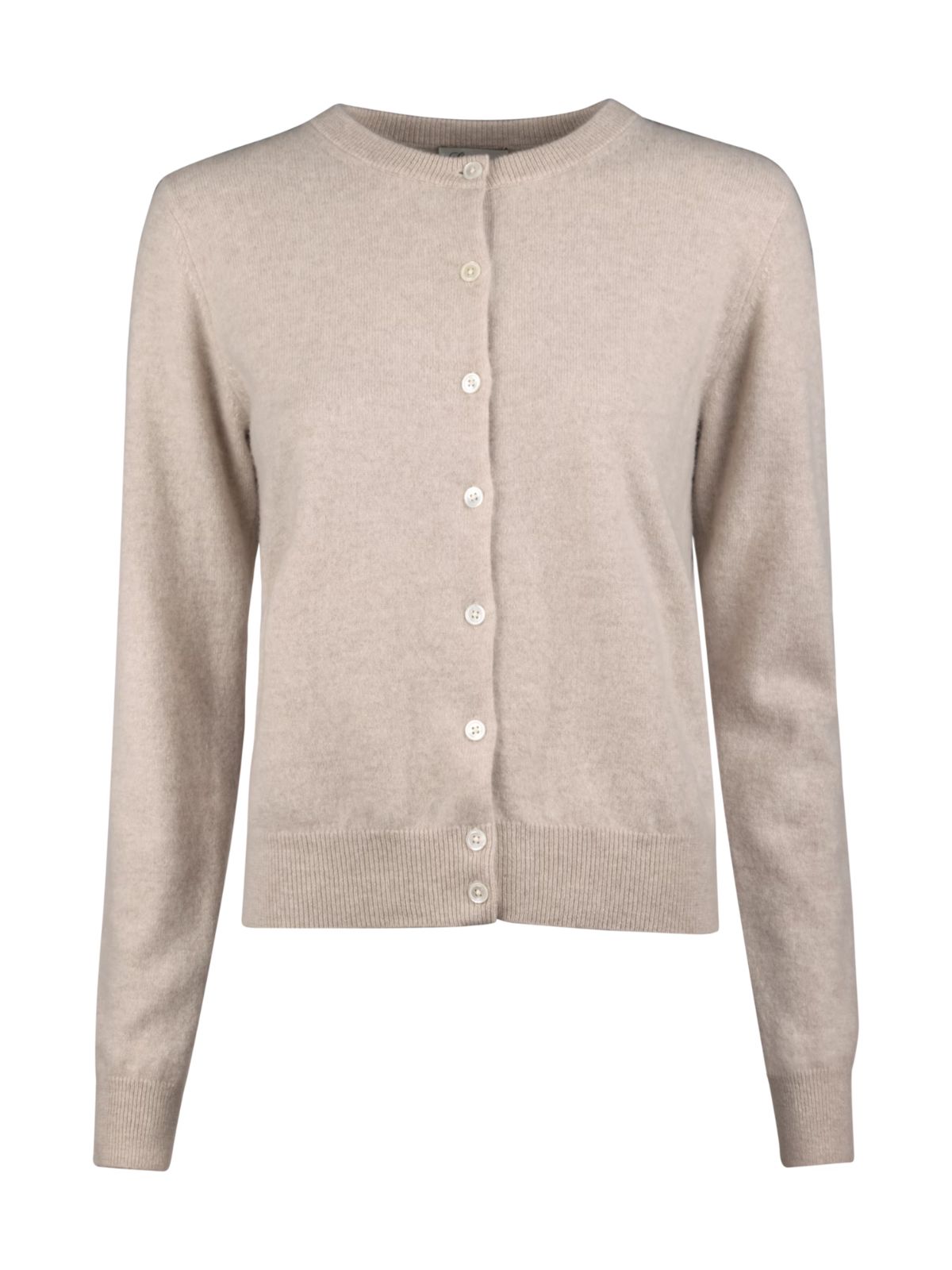 En blød cardigan i kashmir med perlemorsknapper og ribstrikket krave, manchetter samt kant forneden, der giver et elegant og tidløst udtryk.Materiale: 100% Cashmere