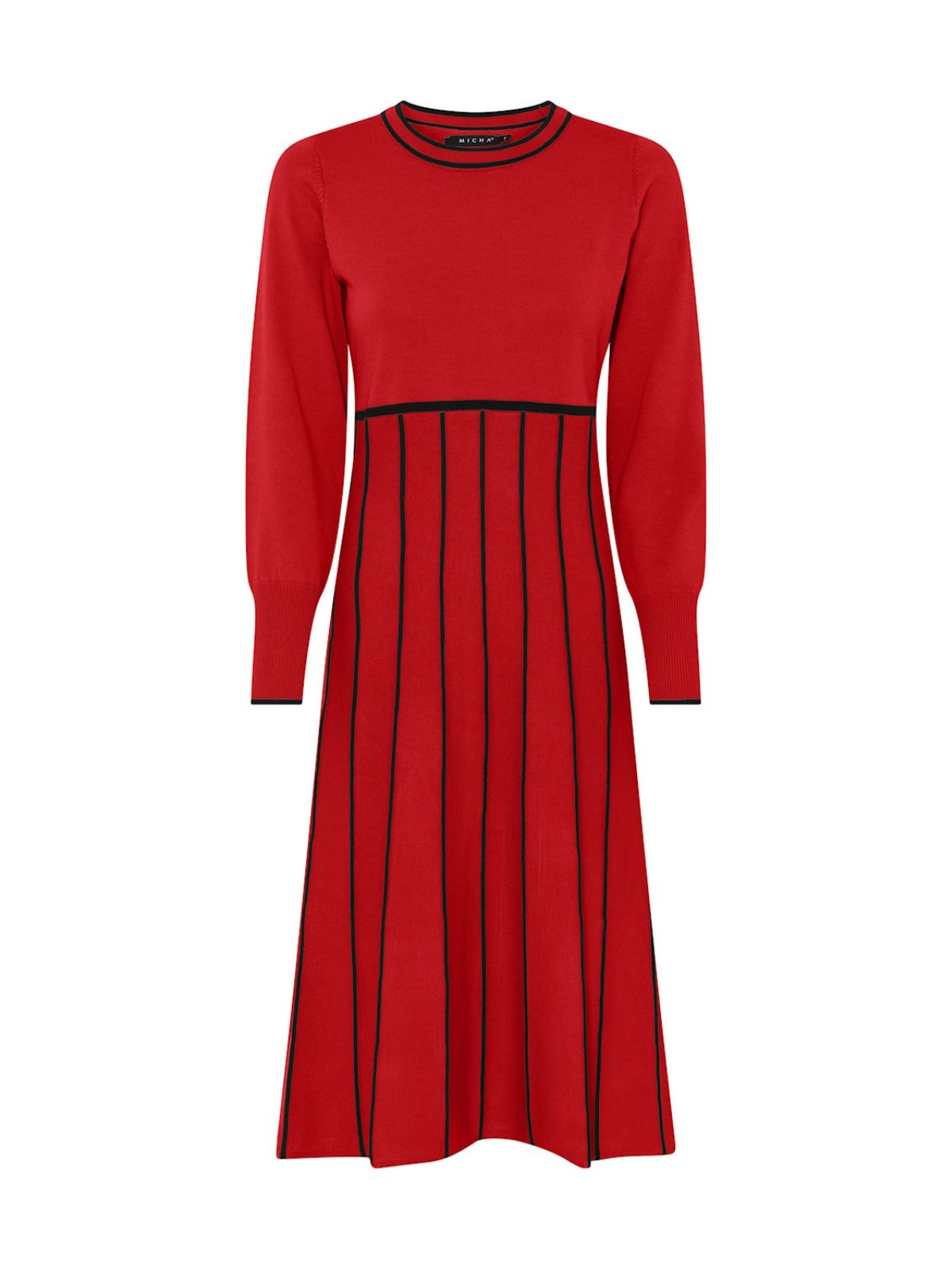 Kjole med stribet skørt fra Micha. Kjolen har en rund halsudskæring, lange ærmer og et luftigt skørt.Materiale: 72% Viskose, 28% Polyester