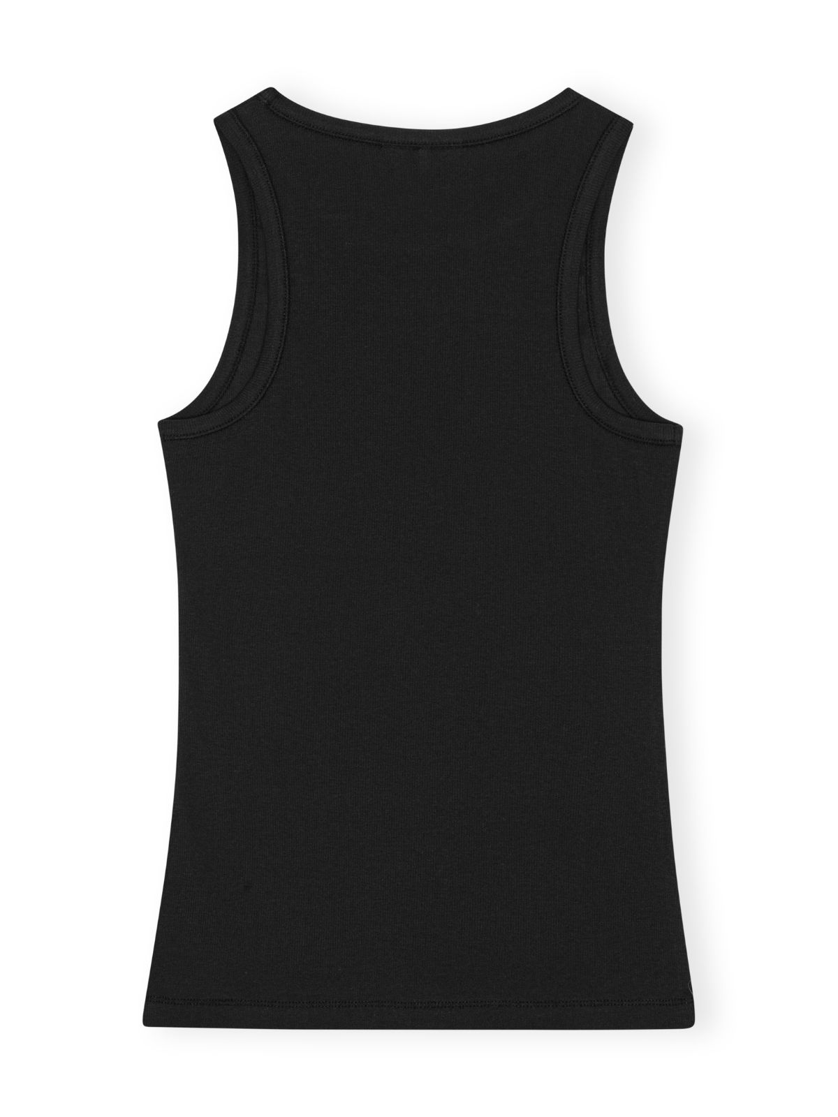 Smart tank top fra Ganni. Toppen har en rund halsudskæring, tætsiddende pasform og logo på fronten. Styles den til et par shorts for et cool sommerlook.Materiale: 95% Økologisk bomuld, 5% Elastan