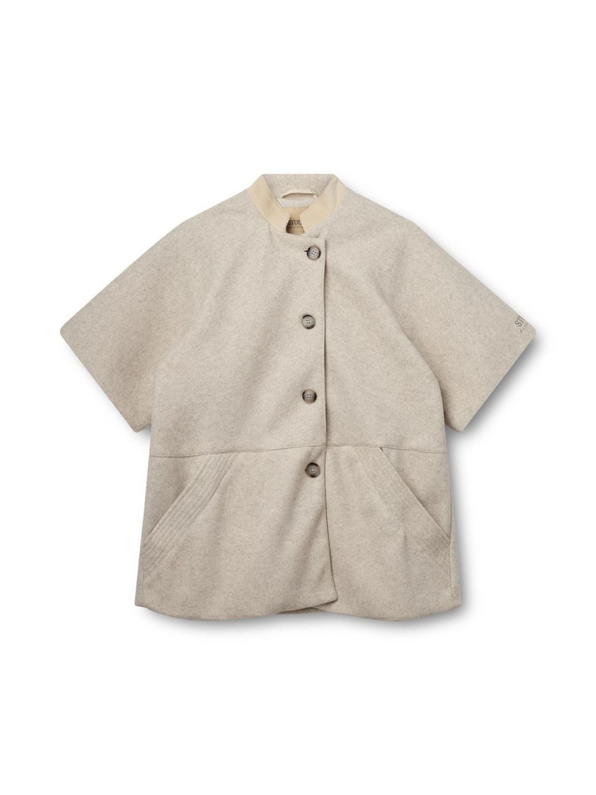 Poncho fra Kopenhaken. Ponchoen har 3/4 lange ærmer, knaplukning, sidelommer, krave i fløjl og broderi på venstre ærme.Materiale: 100% Polyester