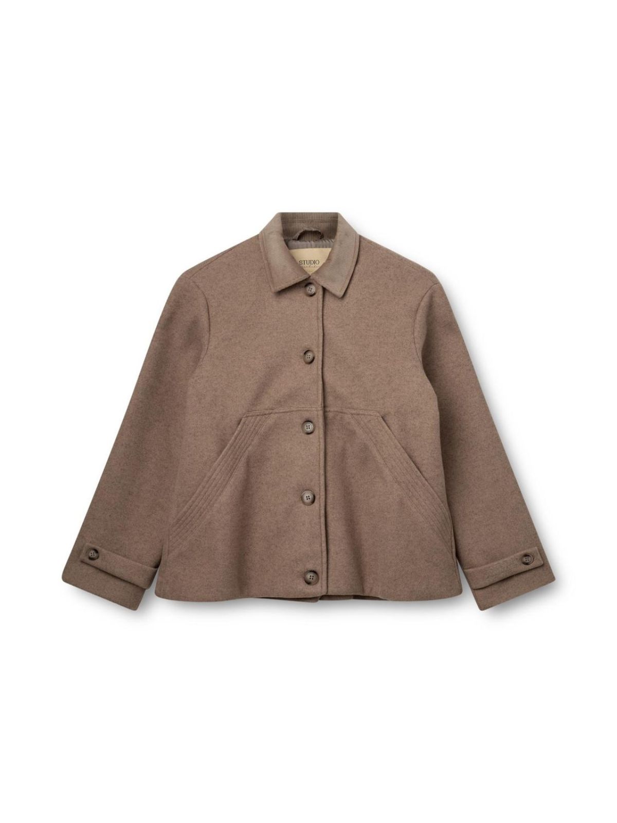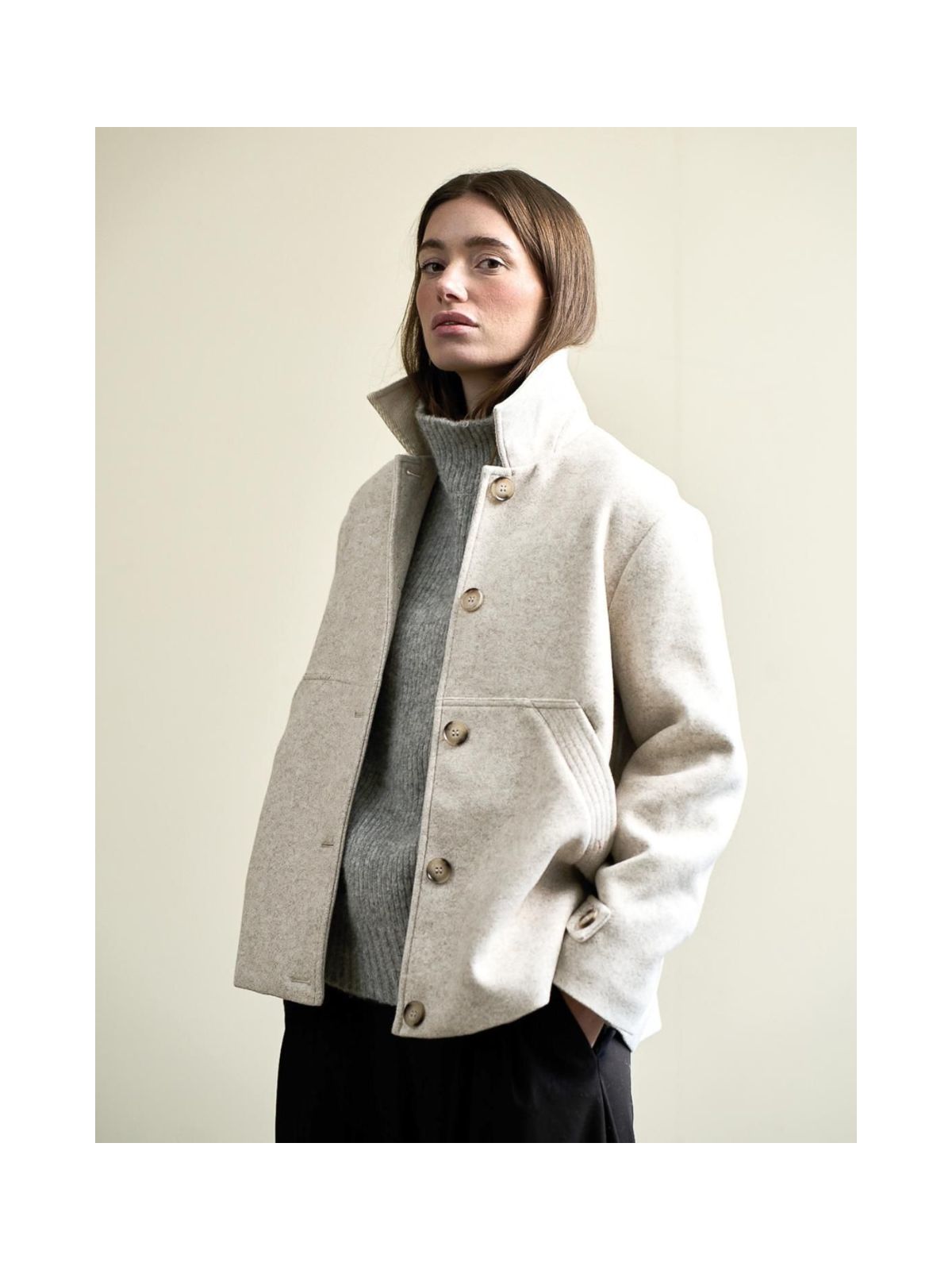 Smart jakke fra Kopenhaken. Jakken har en krave i fløjl, skrå sidelommer og knaplukning på fronten. Den har et let oversize fit, der gør du nemt kan have en strik under.Materiale: 100% Polyester