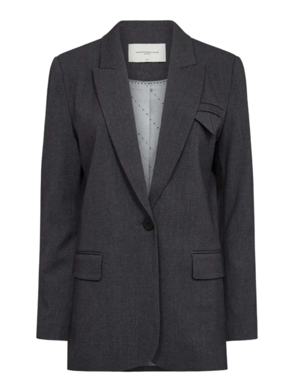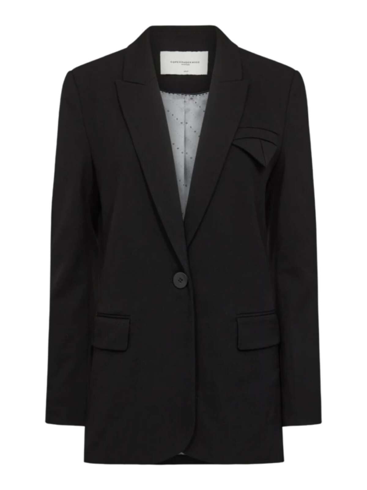 Jakke i ikonisk Tailor-kvalitet med logomønstret foring og brede skuldre. Jakken har V-udskæring med revers, knaplukning, frontlommer, slids bagpå og en regulær pasform, der elegant fremhæver taljen.