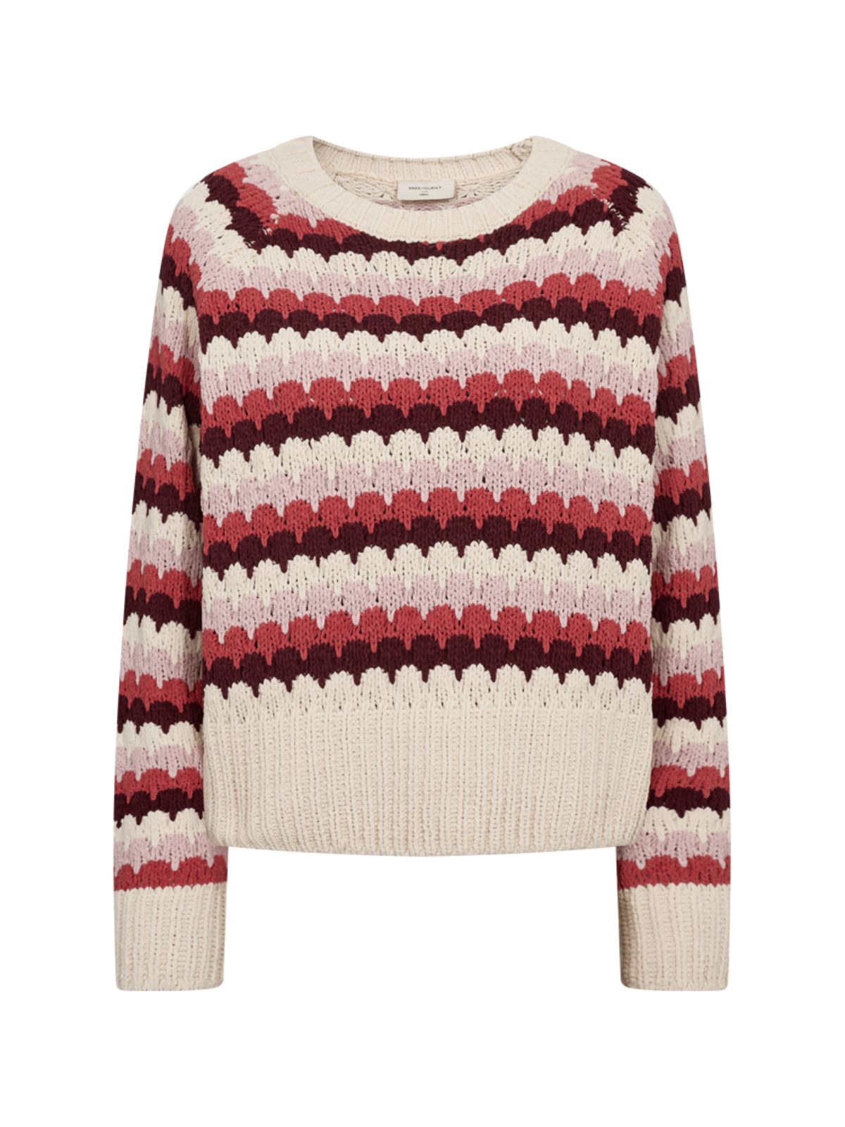 Pullover fra Freequent i den blødeste kvalitet med et moderne, stribet mønster. Modellen har lange ærmer, rund halsudskæring og en elegant, løs pasform, der giver et afslappet men stilfuldt look.Materiale: 100% Polyester