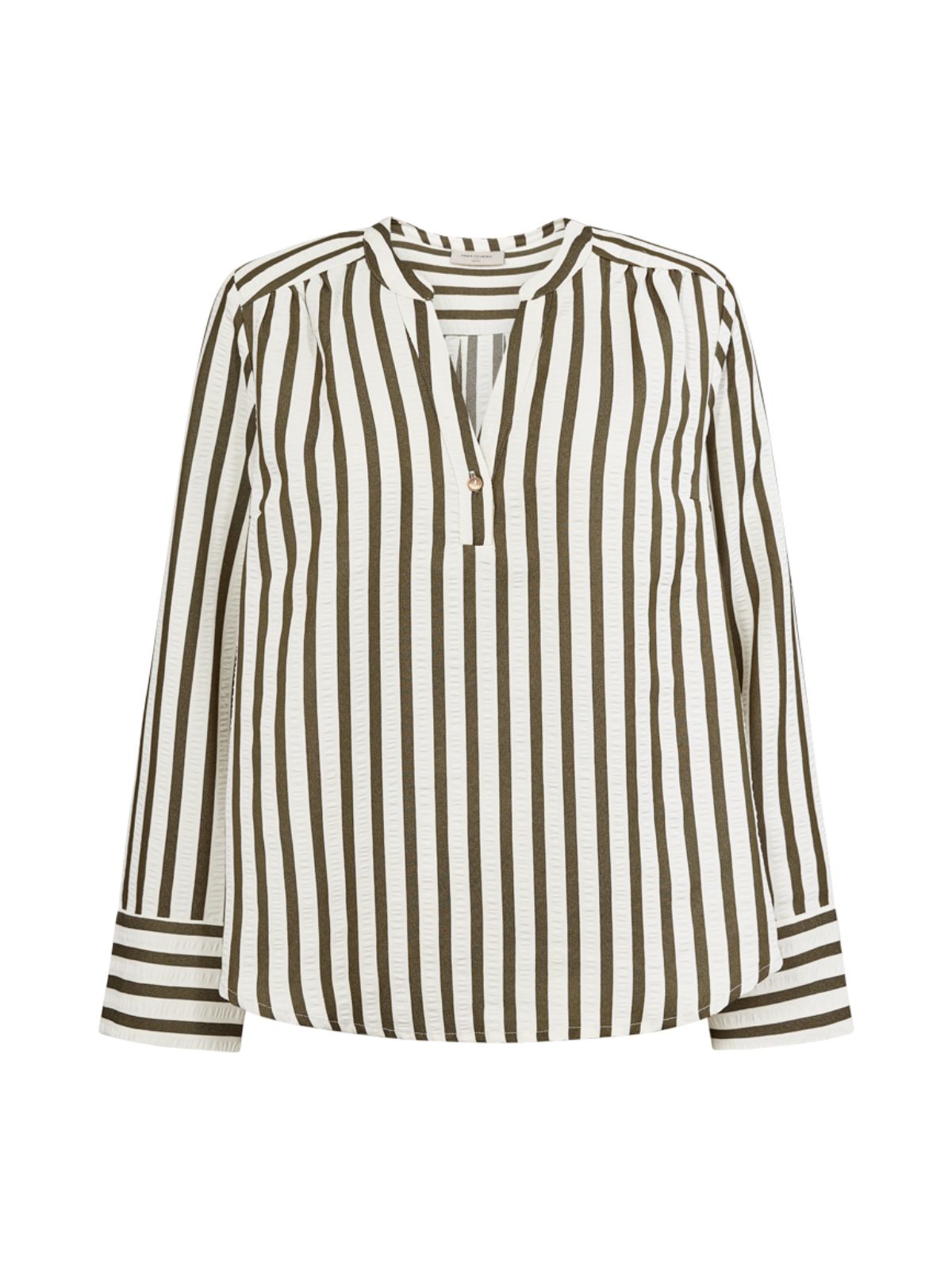Stribet bluse fra Freequent. Blusen har en V-udskæring, lange brede ærmer og et afslappet fit. Perfekt til både jeans og en nederdel.Materiale: 50% Bomuld, 50% Polyester