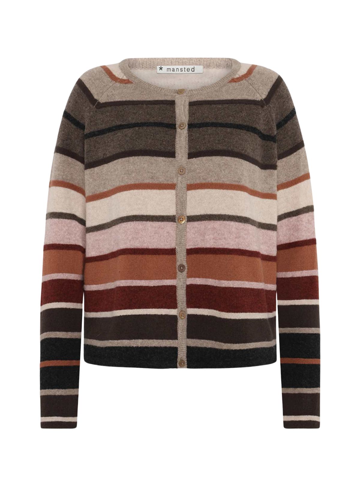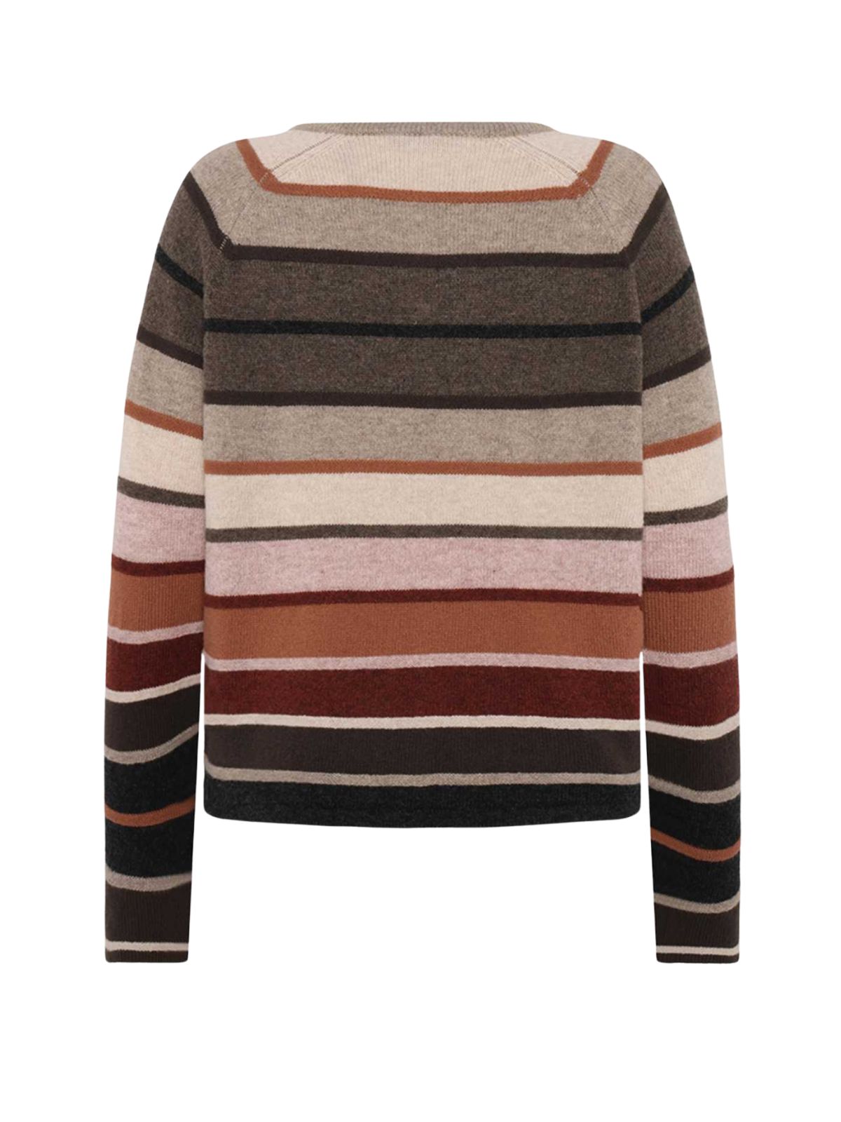 Denne cardigan er strikket i 100% blød lammeuld og har en afslappet pasform med lange ærmer for et moderne udtryk. Den kraftige strik kombinerer striber i glatstrik og omvendt struktur, hvilket giver et levende og farverigt look. Cardiganen lukkes med elegante knapper i agoya-skal, som understreger den eksklusive finish.Materiale: 100% lammeuld