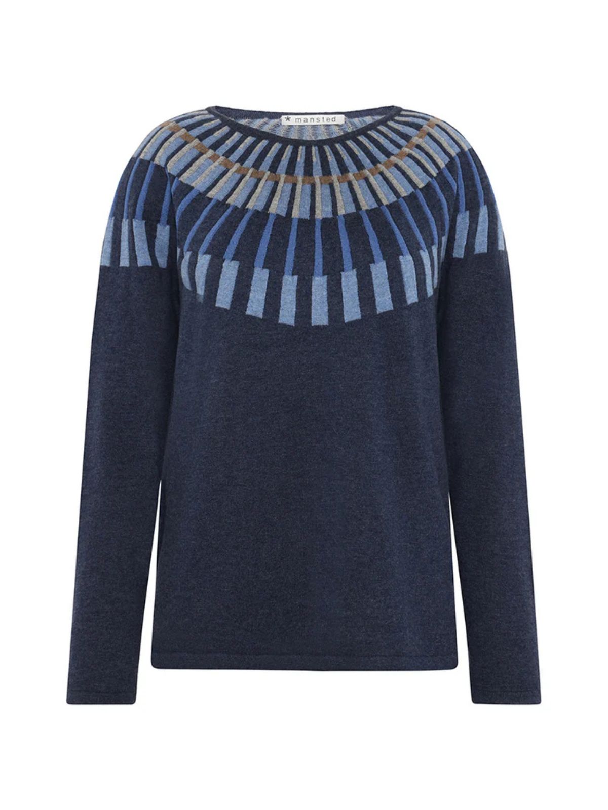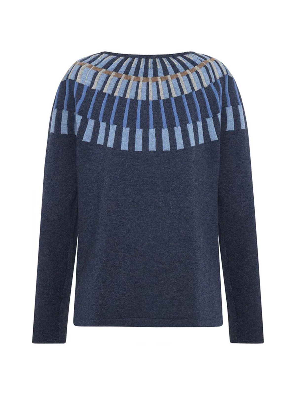 Pullover i finstrik med afslappet fit og raglanærmer for et afslappet look. Det farverige floating jacquard-mønster på bærestykket skaber kontrast til de ensfarvede ærmer og krop, mens slids i sidesømmene giver ekstra bevægelsesfrihed. En moderne og alsidig strik til hverdagsbrug.Materiale: 70% Merino uld, 30% Bomuld