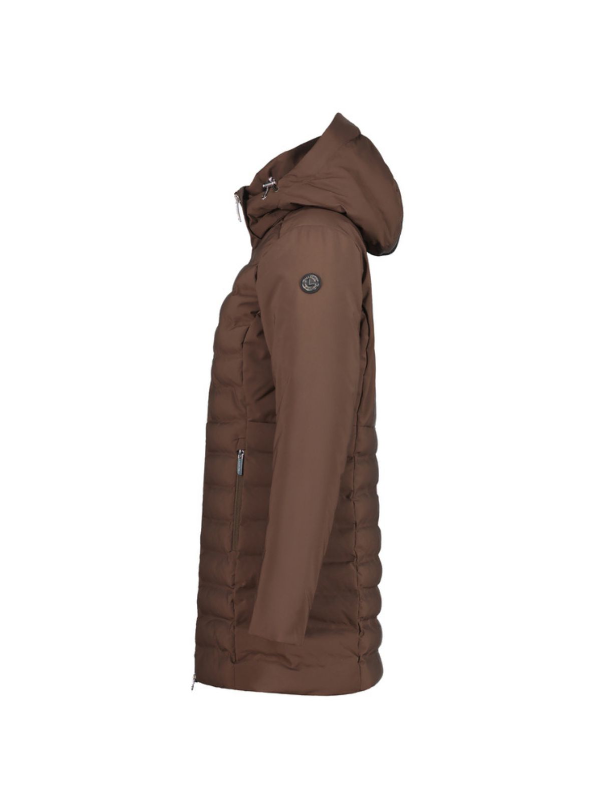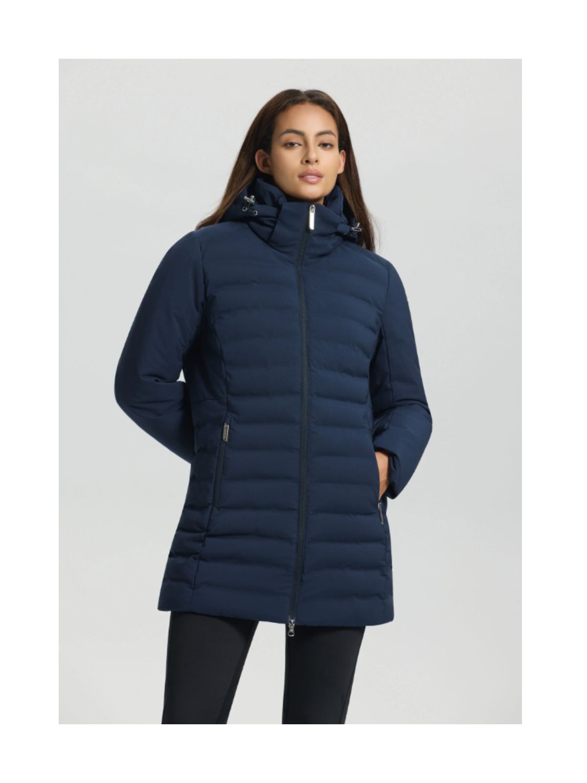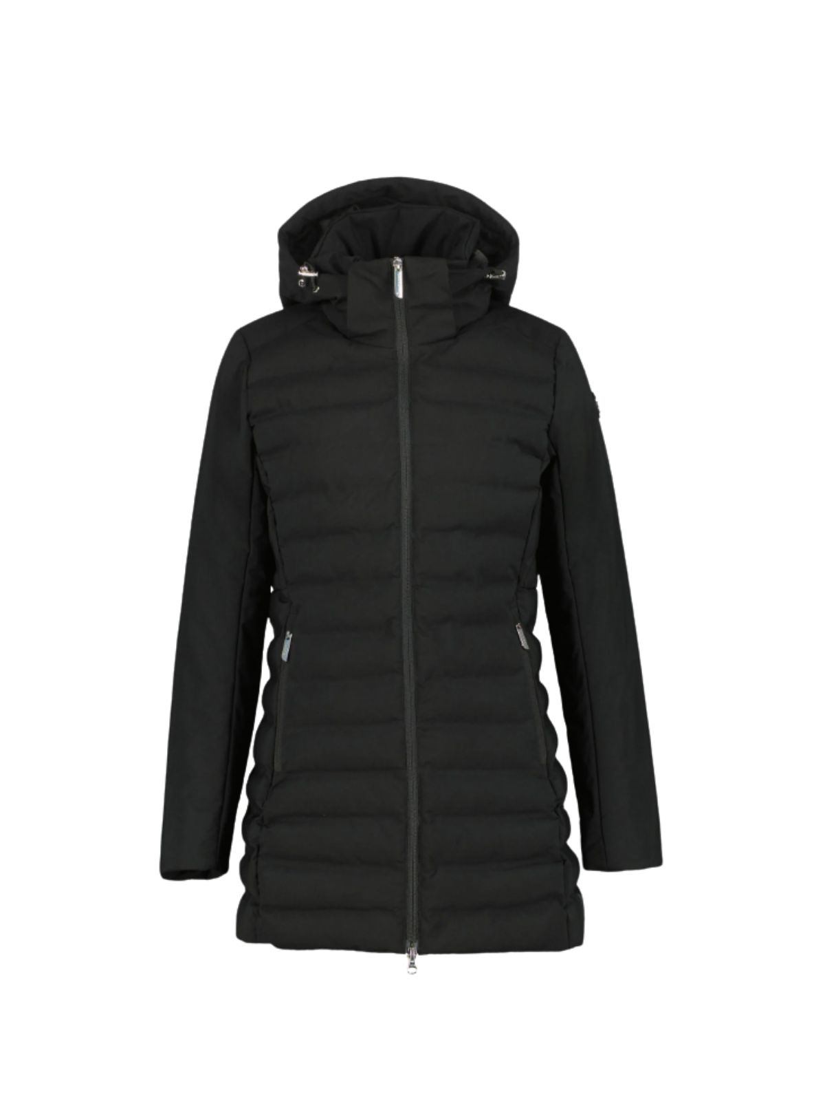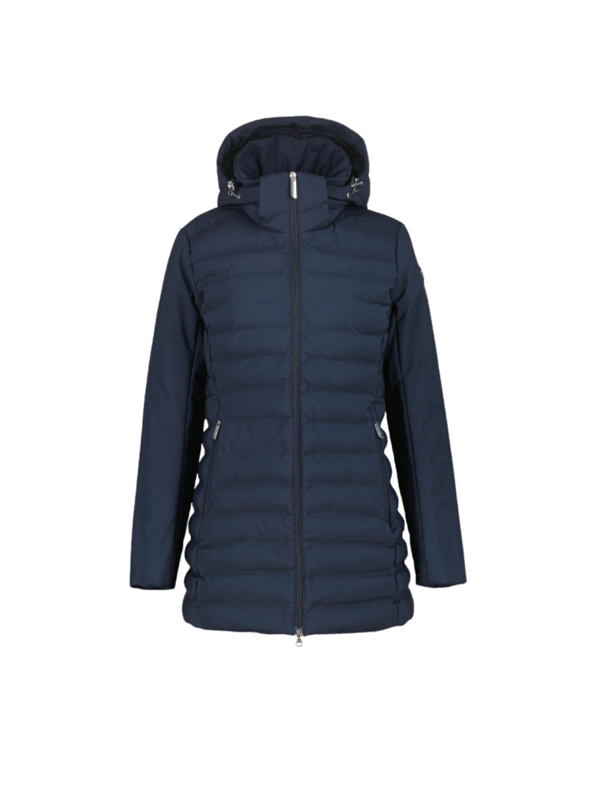 Sporty funktionel vatteret jakke fra LUHTA i vind og vandafvisende design. Jakken har to-vejs lynlåslukning, aftagelig justérbar hætte. stiklommer på fronten med blødt håndvarmende for. Jakken har inderlomme med lynlås, justërbar kant forneden. Jakken er åndbar og med let isolering samt logo.Længde: ca. 80 cm
