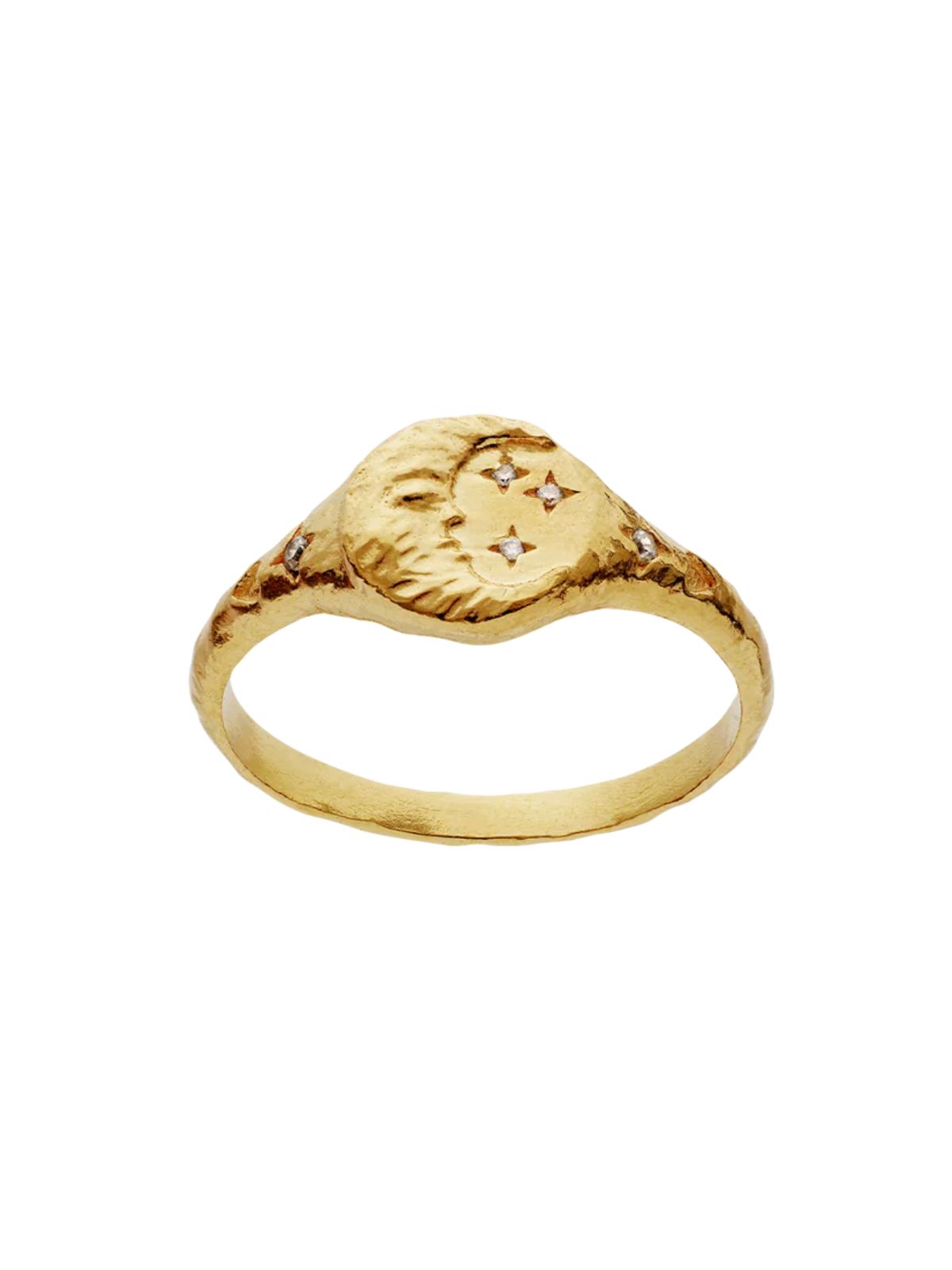Magdalena Ring er et feminint og symbolsk smykke med en lille halvmåne, der fungerer som en talisman og udstråler styrke og elegance.