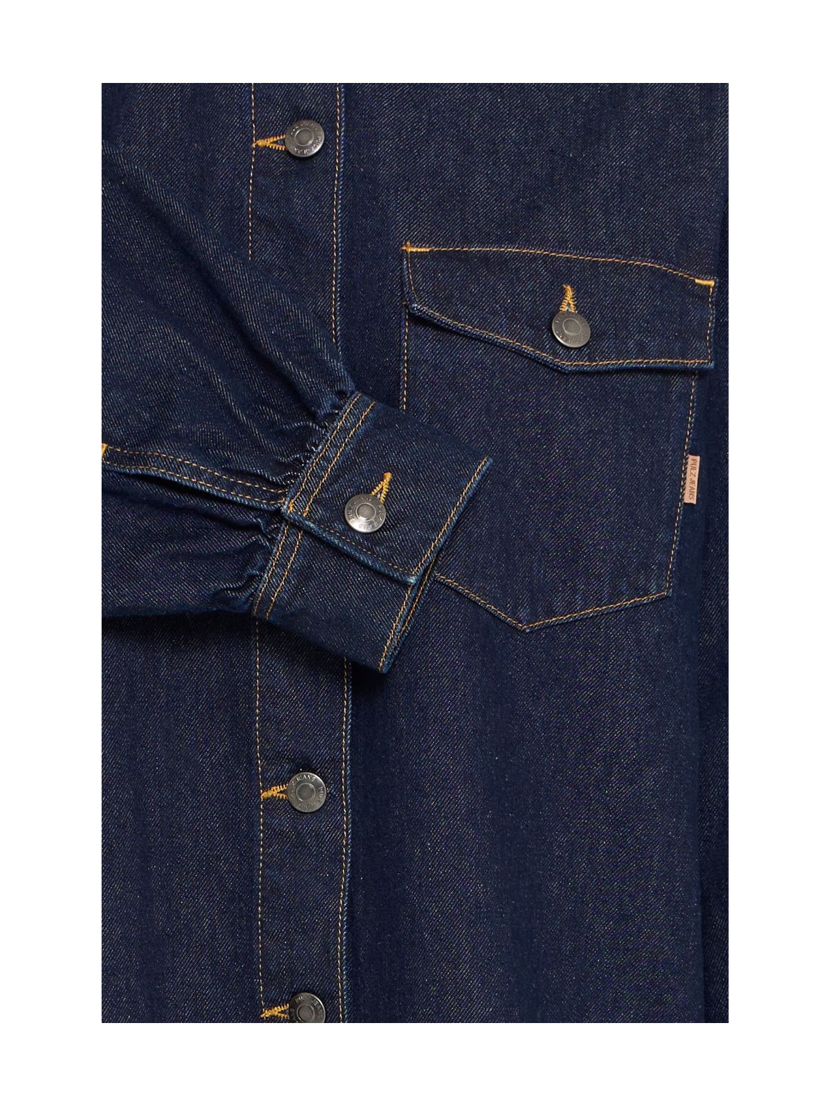 En tidløs denimskjorte med klassisk krave, gennemgående knaplukning og praktisk brystlomme. De lange ærmer med elastiske manchetter sikrer komfort, så skjorten fungerer perfekt både til hverdagsbrug og mere pæne anledninger.Materiale: 100% Bomuld