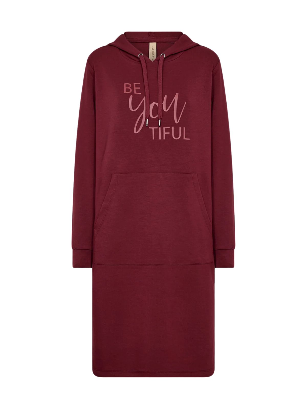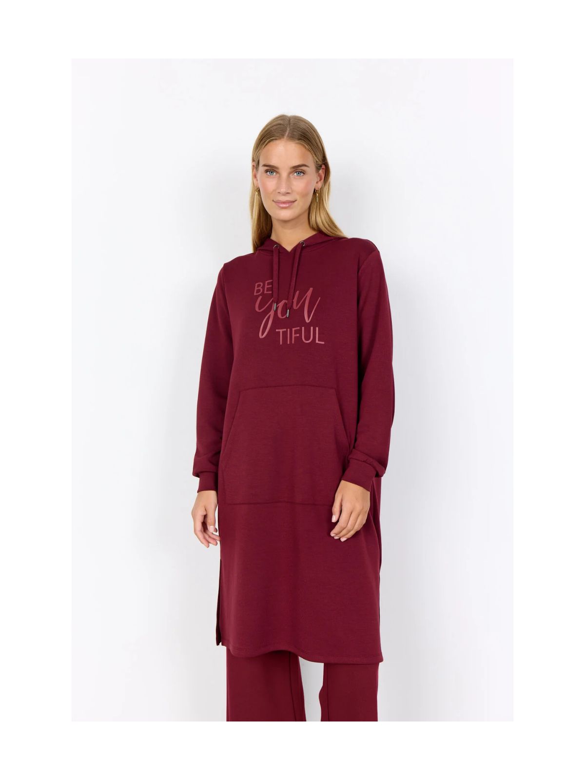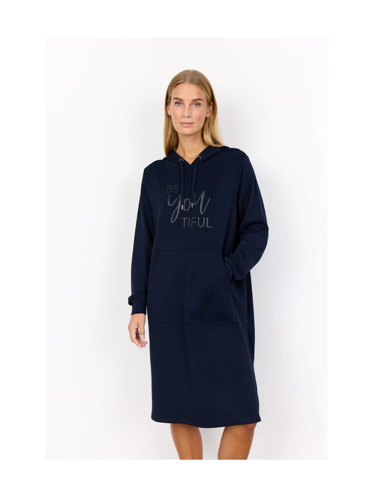 En komfortabel og stilfuld kjole med hætte, lange ærmer og en praktisk lomme foran. Det grafiske print giver kjolen et moderne udtryk, og den kan nemt styles med sneakers til et afslappet look eller med leggings for ekstra varme og komfort.Materiale: 48% Modal, 48% Polyester, 4% Elastan