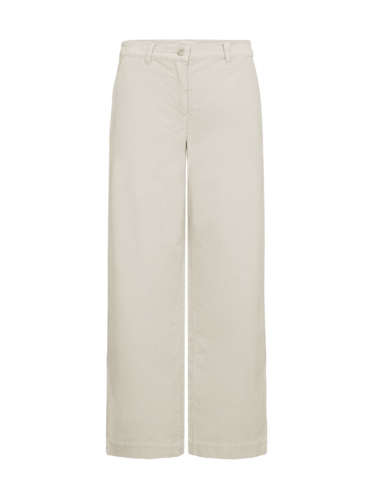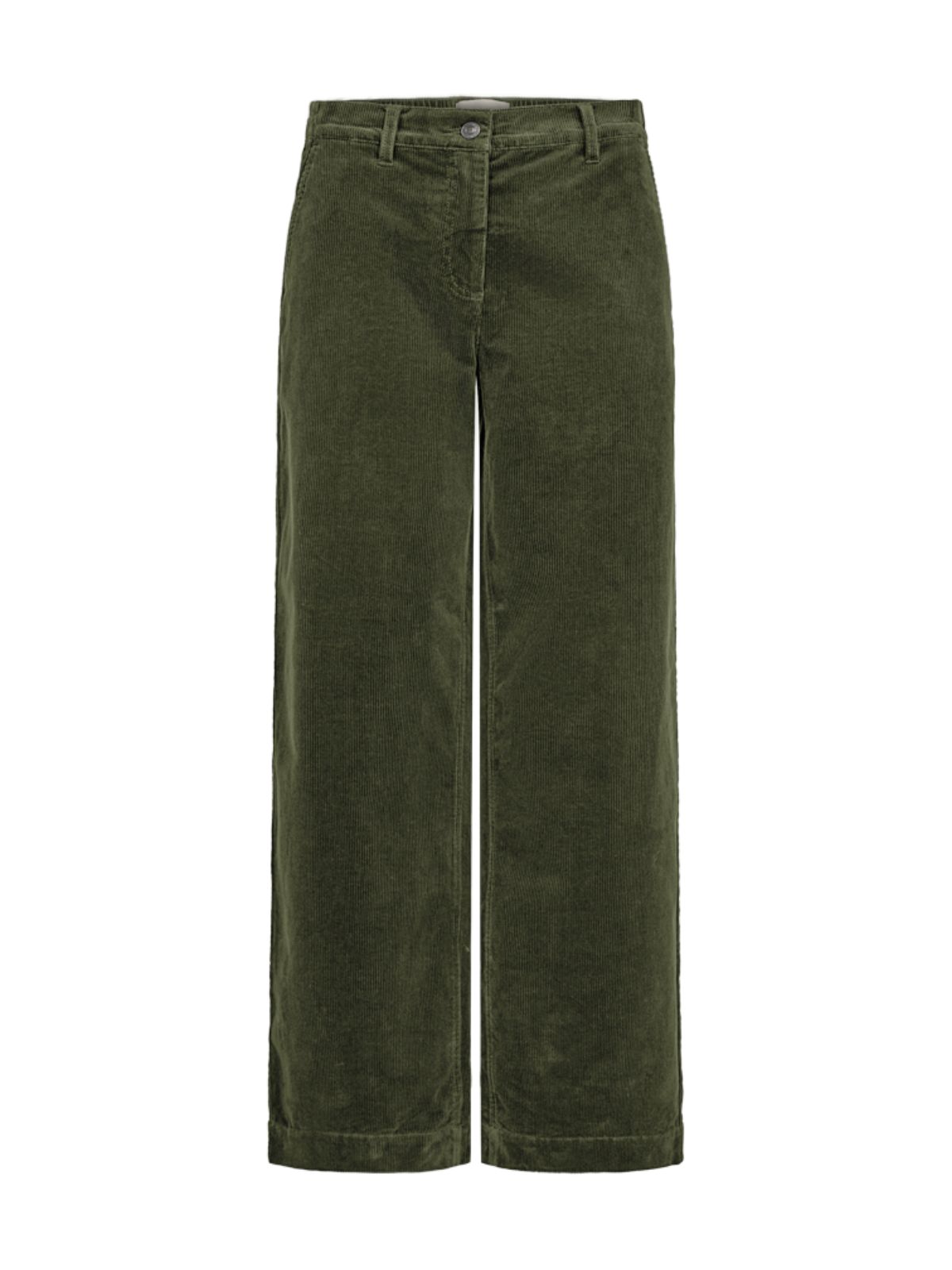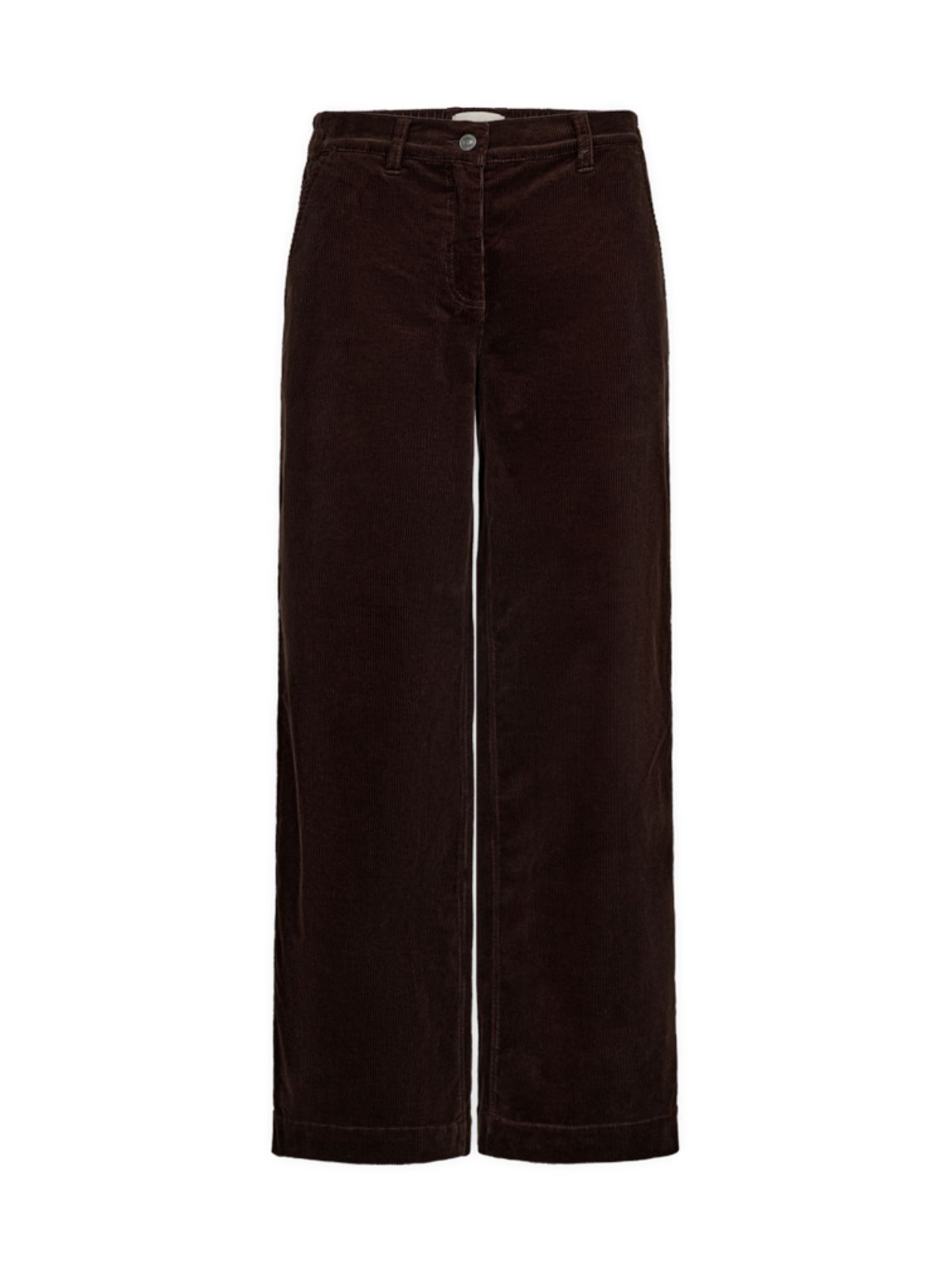 Bukser fra Freequent i blød fløjlskvalitet med et moderne udtryk. Modellen har høj talje, knap- og lynlåslukning, skrå sidelommer samt en antydning af baglommer. Den vide pasform giver et afslappet men stilfuldt look.Materiale: 97% Bomuld, 3% Elastan