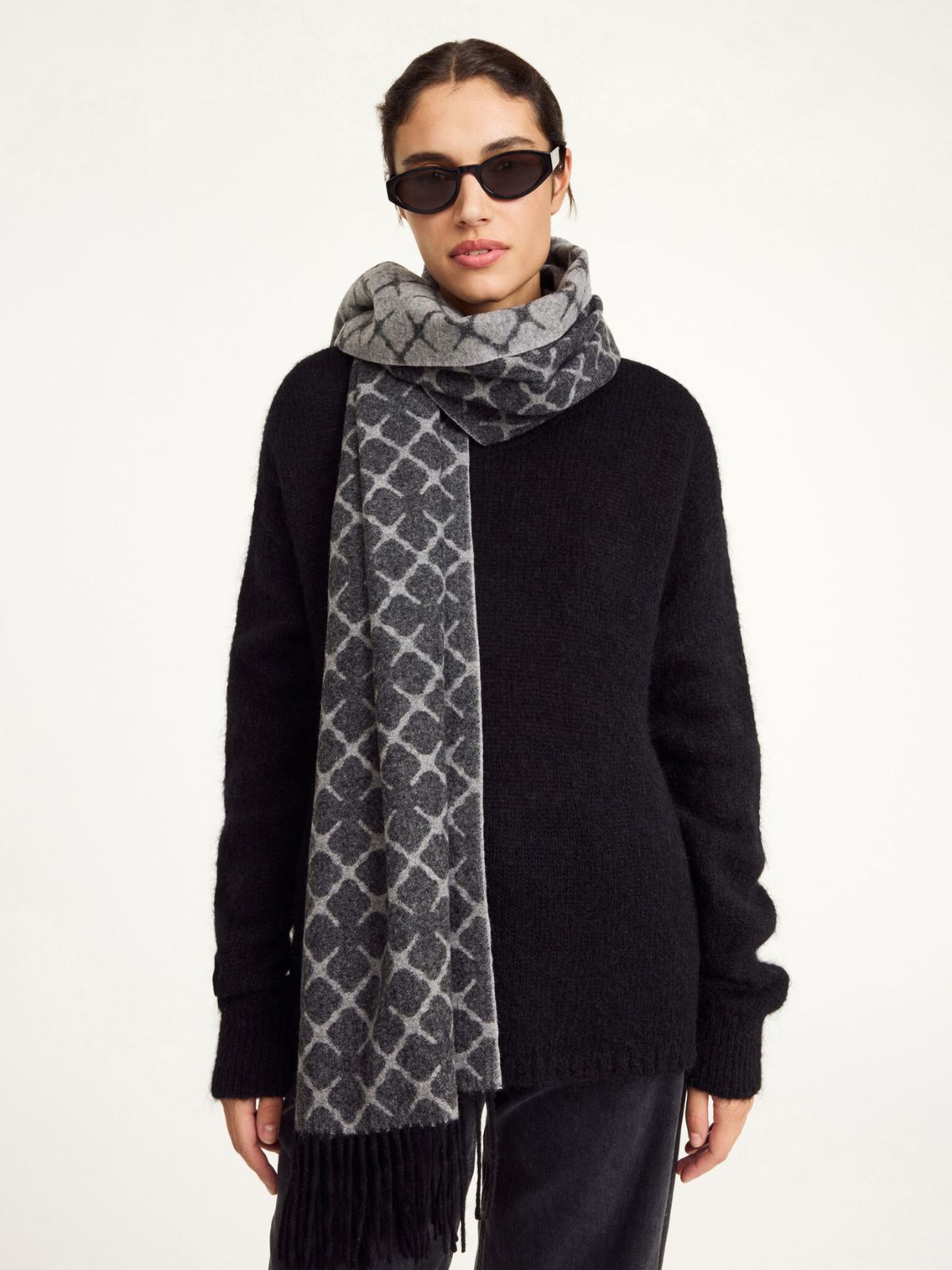 Uldent ORTEGA tørklæde fra By Malene Birger fremstillet af en luksuriøs kashmirblanding, er både elegant og varmt – hvilket gør det til den ideelle ledsager på kolde dage. Tørklædets frynser langs kanten og det gennemgående mønster med det karakteristiske blomsterprint, imponerer det med sit elegante look og fløjlsbløde touch.Mål: 60 cm X 200 cm