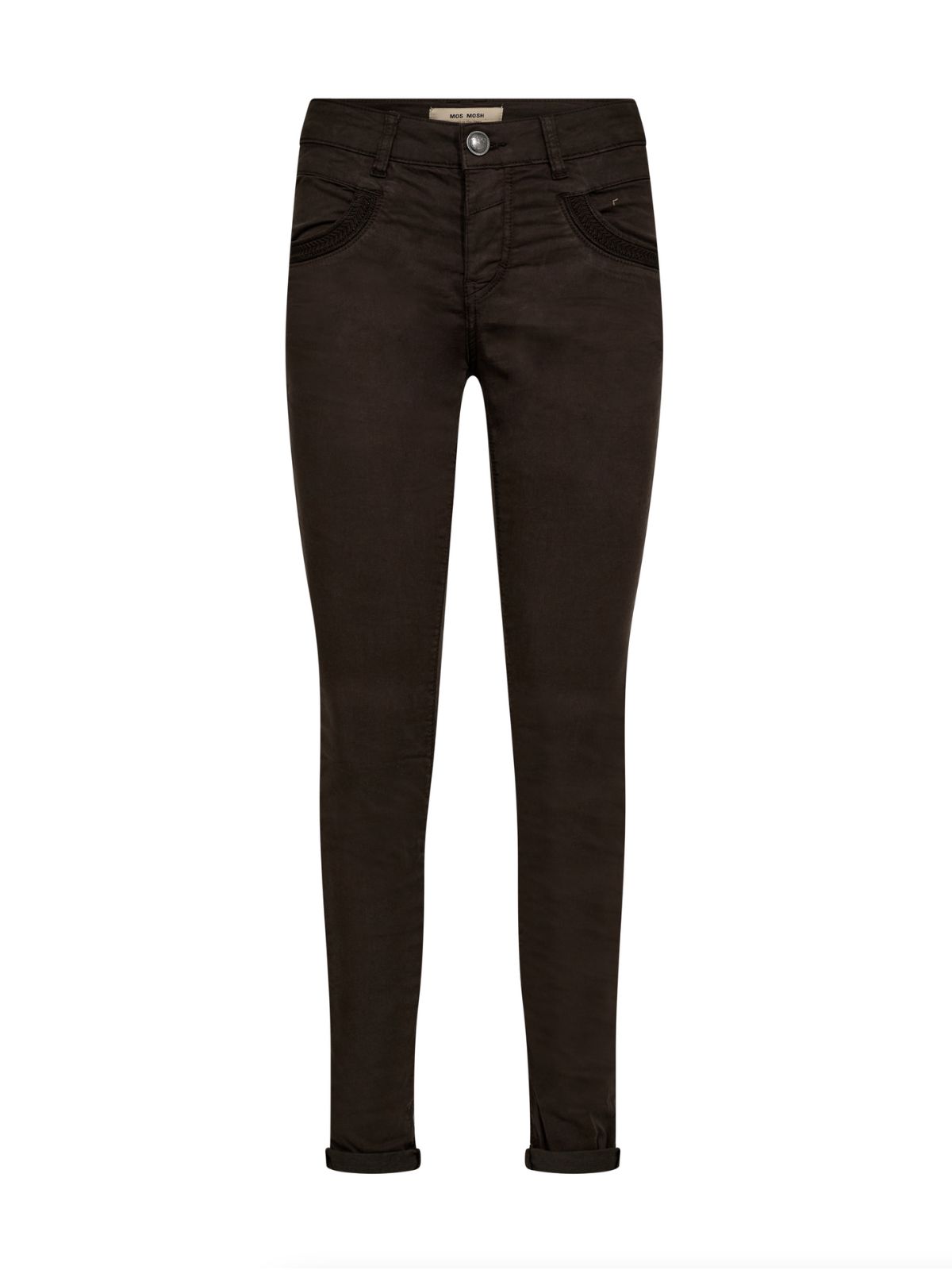 Disse superbløde bukser med mid-rise og regulær tapered fit giver ultimativ komfort. Fremstillet i en lyocell- og bomuldsblanding med et strejf af stræk og diskret tone-i-tone broderi på lommerne. Style dem med en let strik eller skjorte for et elegant og afslappet look.Materiale: 57% Lyocell, 29% Bomuld, 11% Polyester, 3% Elastan