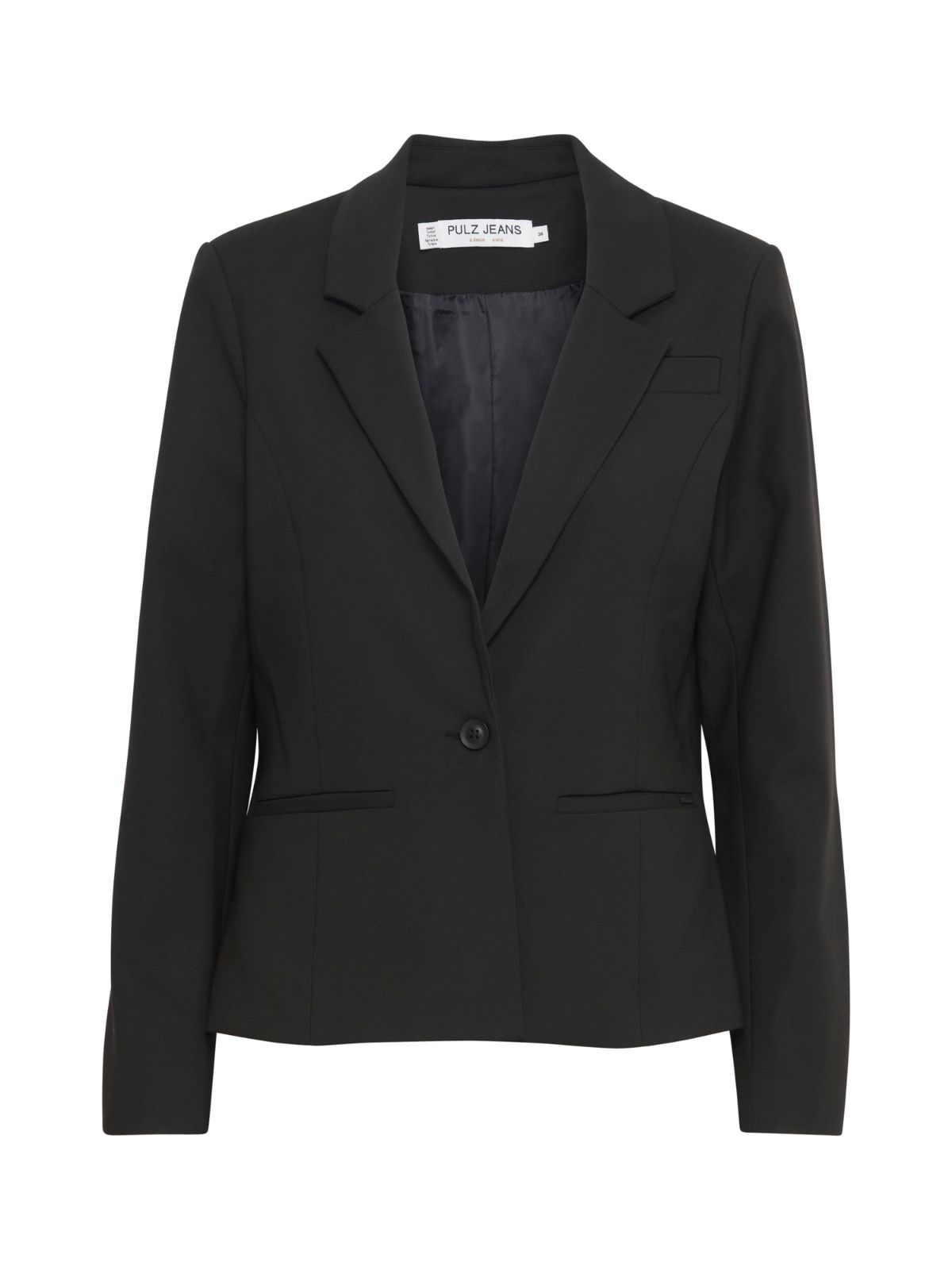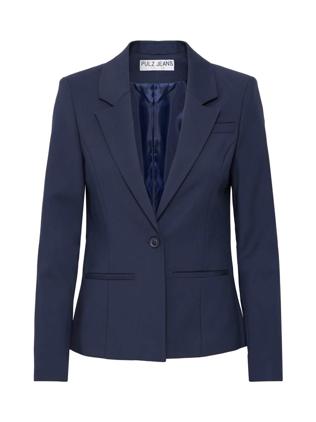 Enkeltradet blazer fra Pulz Jeans. Blazeren har revers med indhak, lommer og lukkes med en enkelt knap på fronten.Materiale: 52% Bomuld, 45% Polyester, 3% Elastan