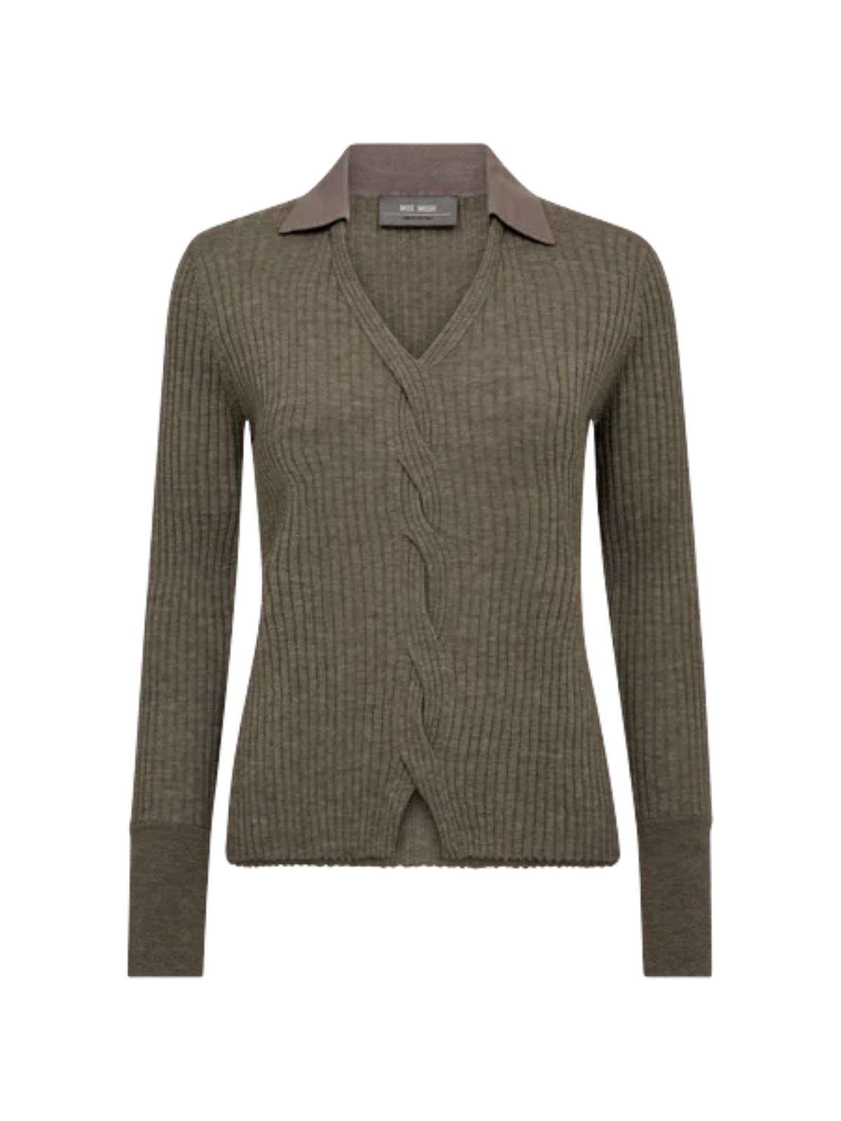 Et stilfuldt must-have i enhver garderobe. Denne trendy polo er lavet af en blød uldblanding i en flatterende regulær pasform. Den er designet med en klassisk krave, en chik V-udskæring og elegante flettede strikdetaljer foran, der tilfører et afslappet, men sofistikeret udtryk. Perfekt at style med jeans og chunky støvler for et cool look.Materiale: 80% Uld, 20% Polyester