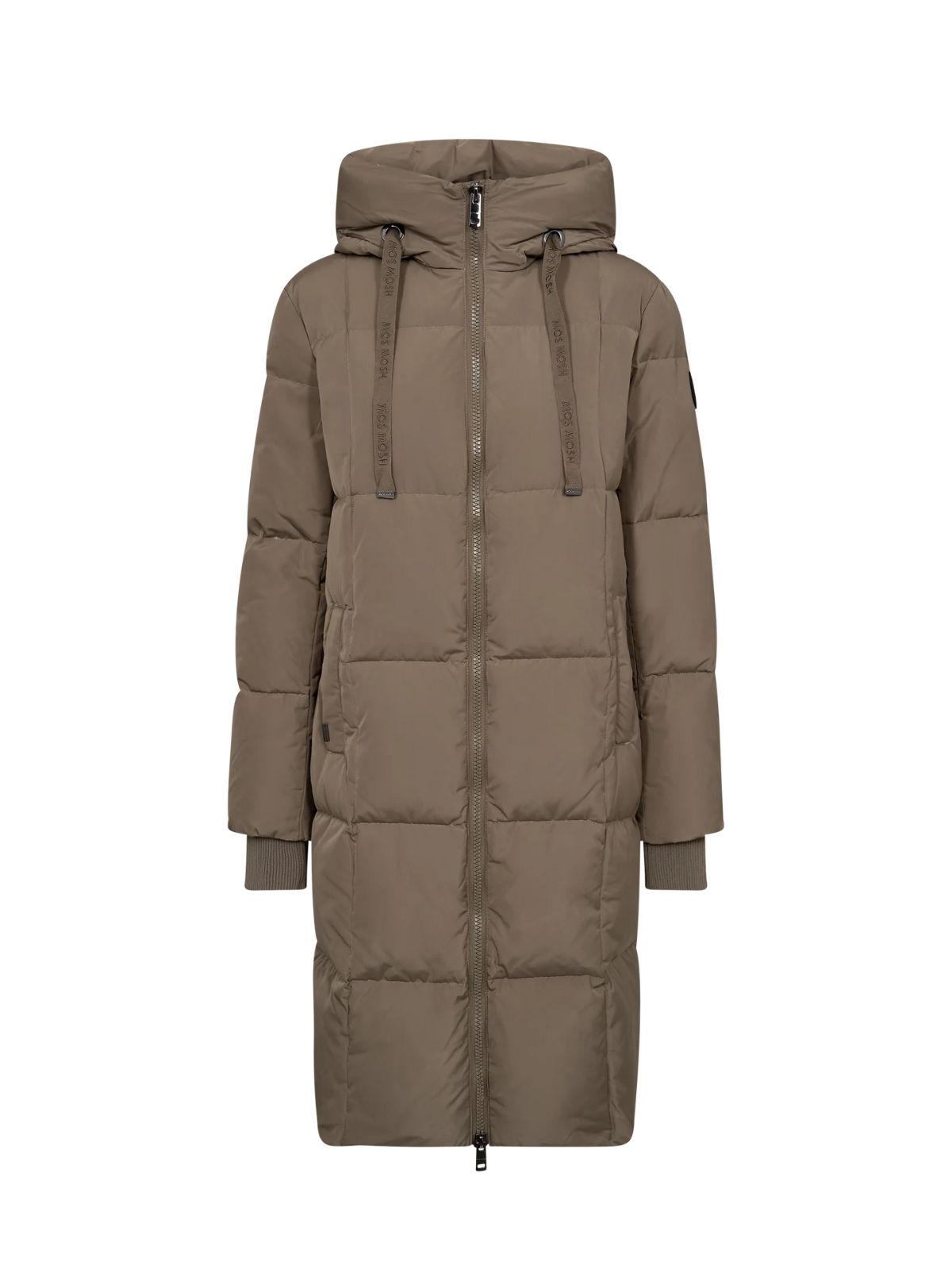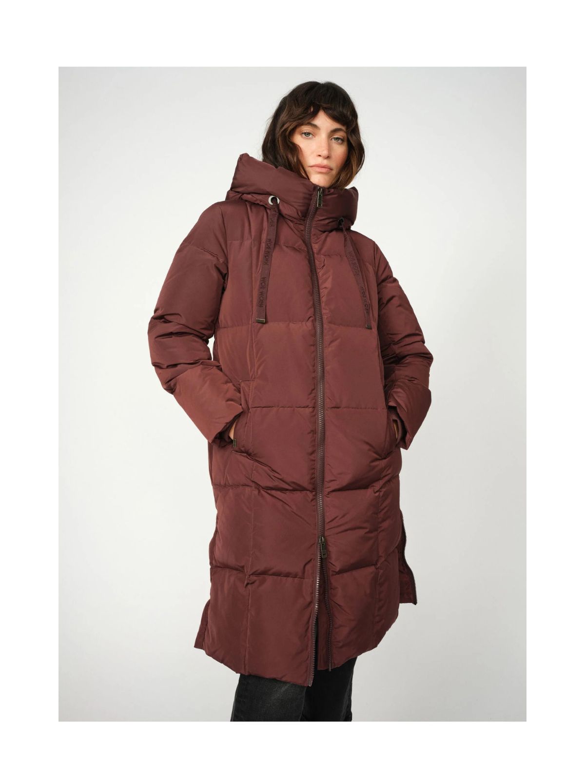Den højt elskede Nova frakke fra MOS MOSH. Jakken har den fået en upgrade i form af ternede paneler i blød dun. Men bare rolig, den høje krave med snøreluk og hætte sørger stadig for at du stadig kan holde varmen. Den stærke markante lynlås kan åbnes fra bunden og giver dig dermed mere fleksibilitet på farten samt lynlåsene i siden, som er gode til dig, der cykler på arbejde. Frakken har et let feel takket være det ansvarligt producerede dun. Brug den til alt!Længde: 100 cm - Målt i str. L