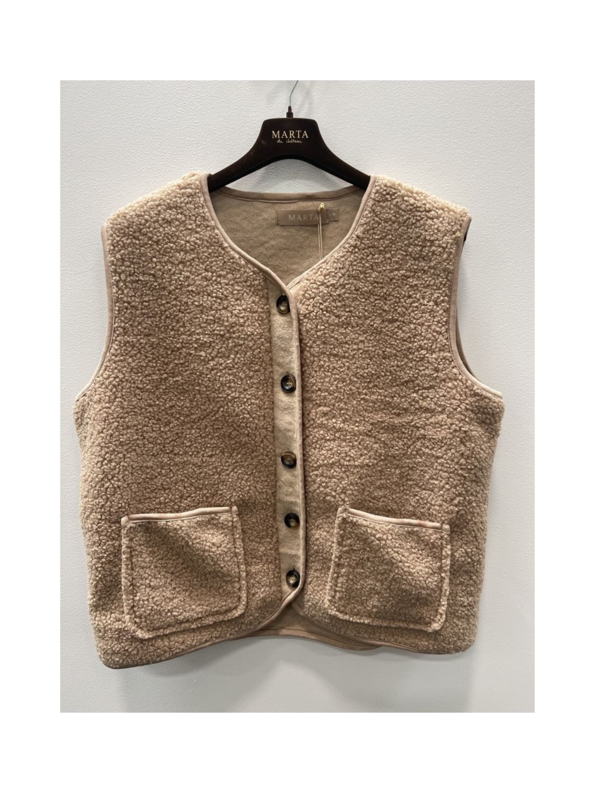 Vest i teddy stof fra Marta Du Chateau. Vesten har knaplukning på fronten, to lommer og et regulært fit.Materiale: 90% Polyester, 10% Bomuld