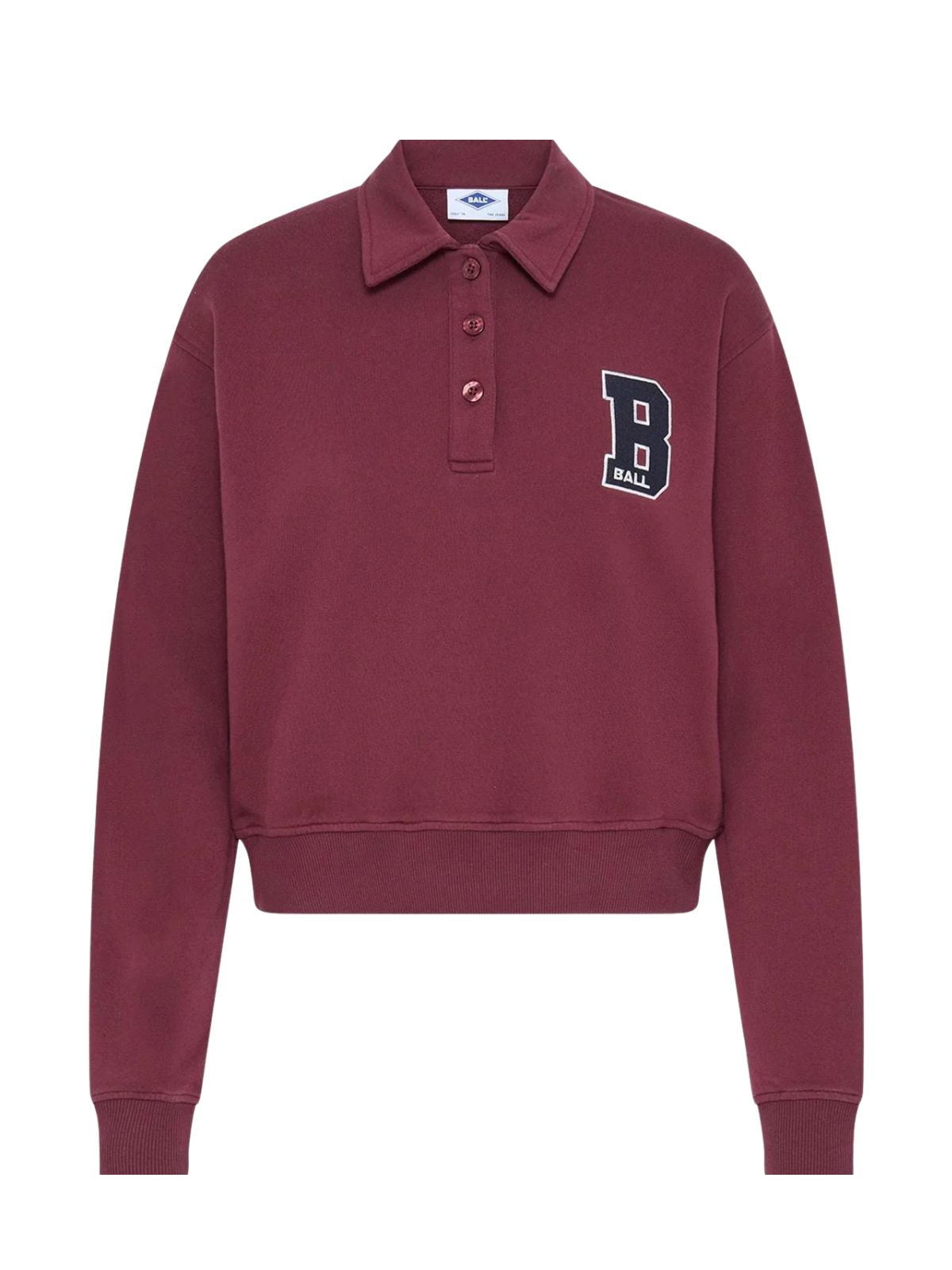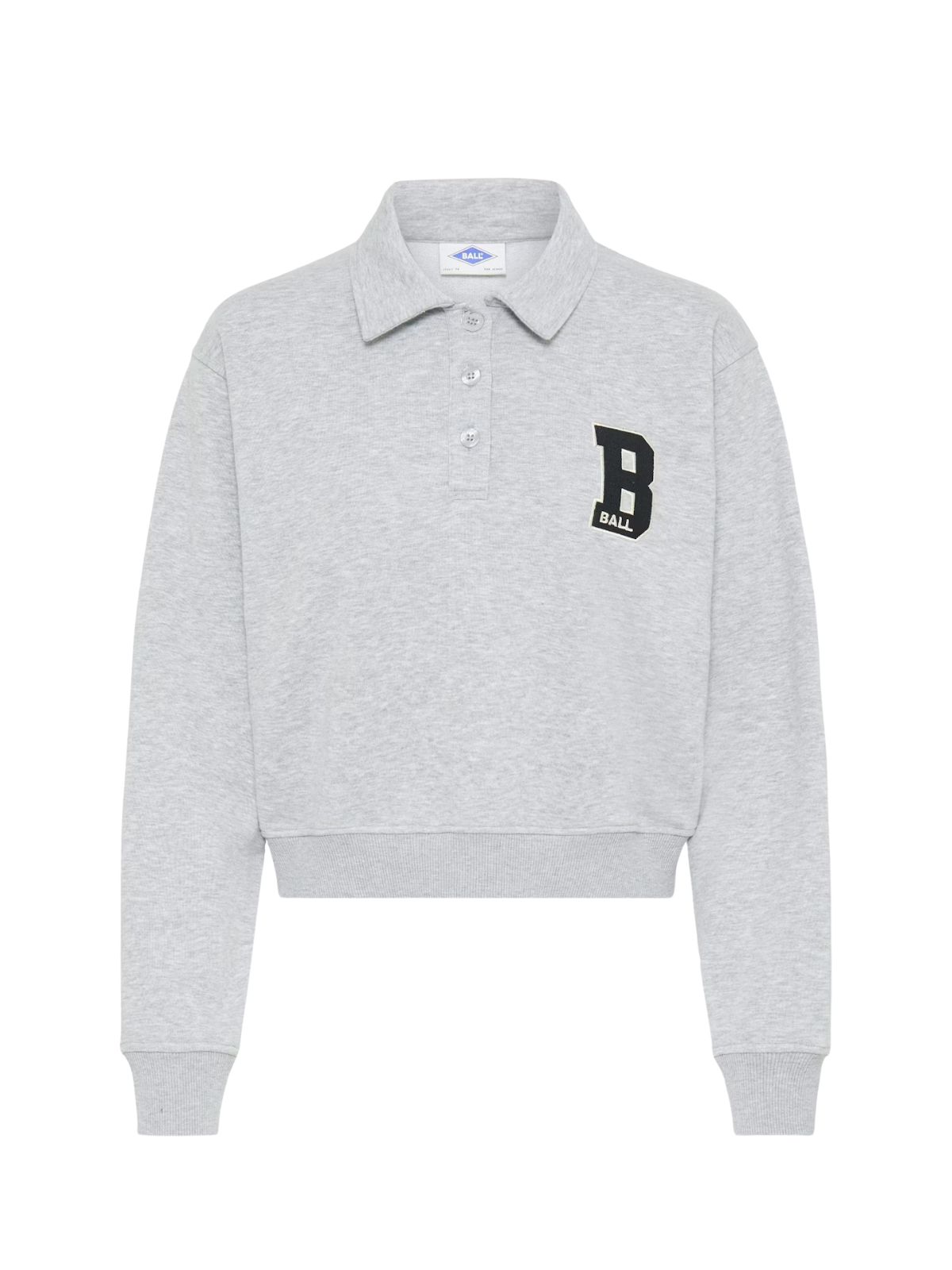 En kort sweatshirt med et enkelt og sporty udtryk. Den har en lige pasform, polokrave med tre knapper, ribkanter og en markant bogstavdetalje på brystet. Perfekt til et casual hverdagslook.Materiale: 100% Bomuld