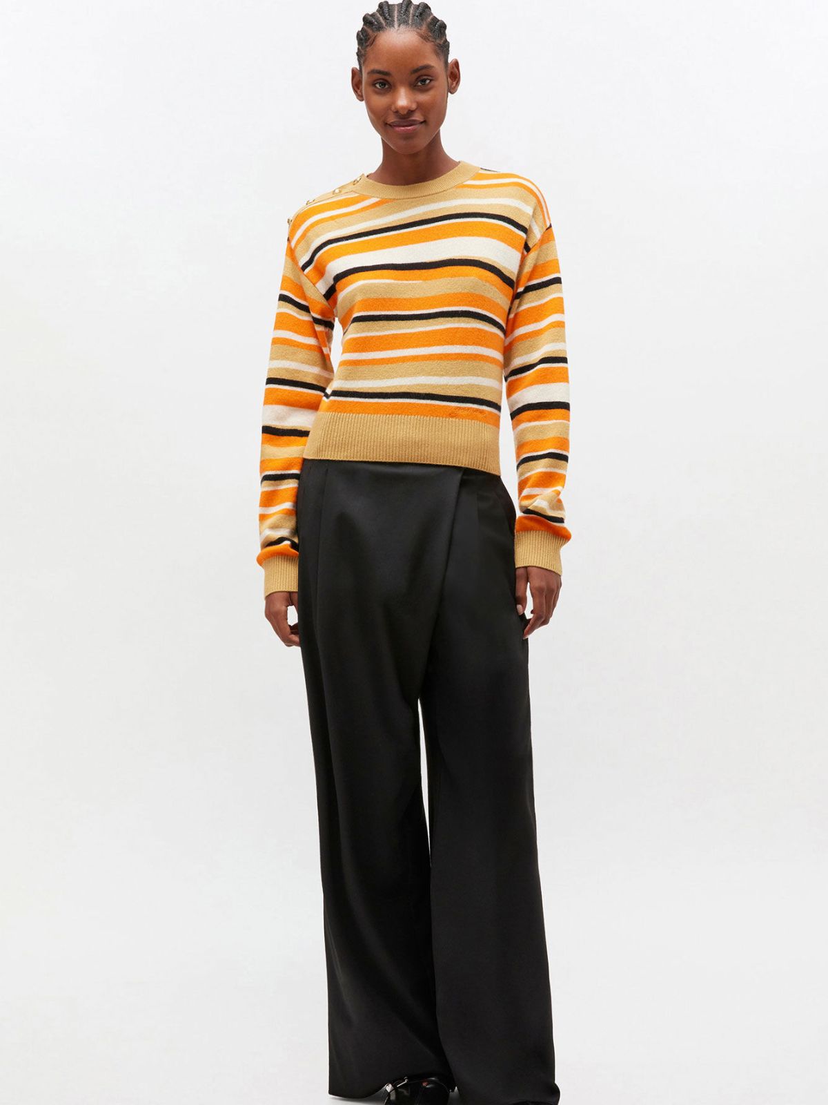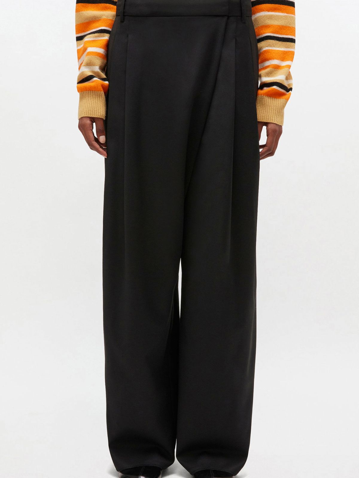 Fashion smart wide lg buks med crossover effekt fra GANNI. Buksen har hægtelukning samt bæltestropper og stiklommer.Pasform: Loose Fit