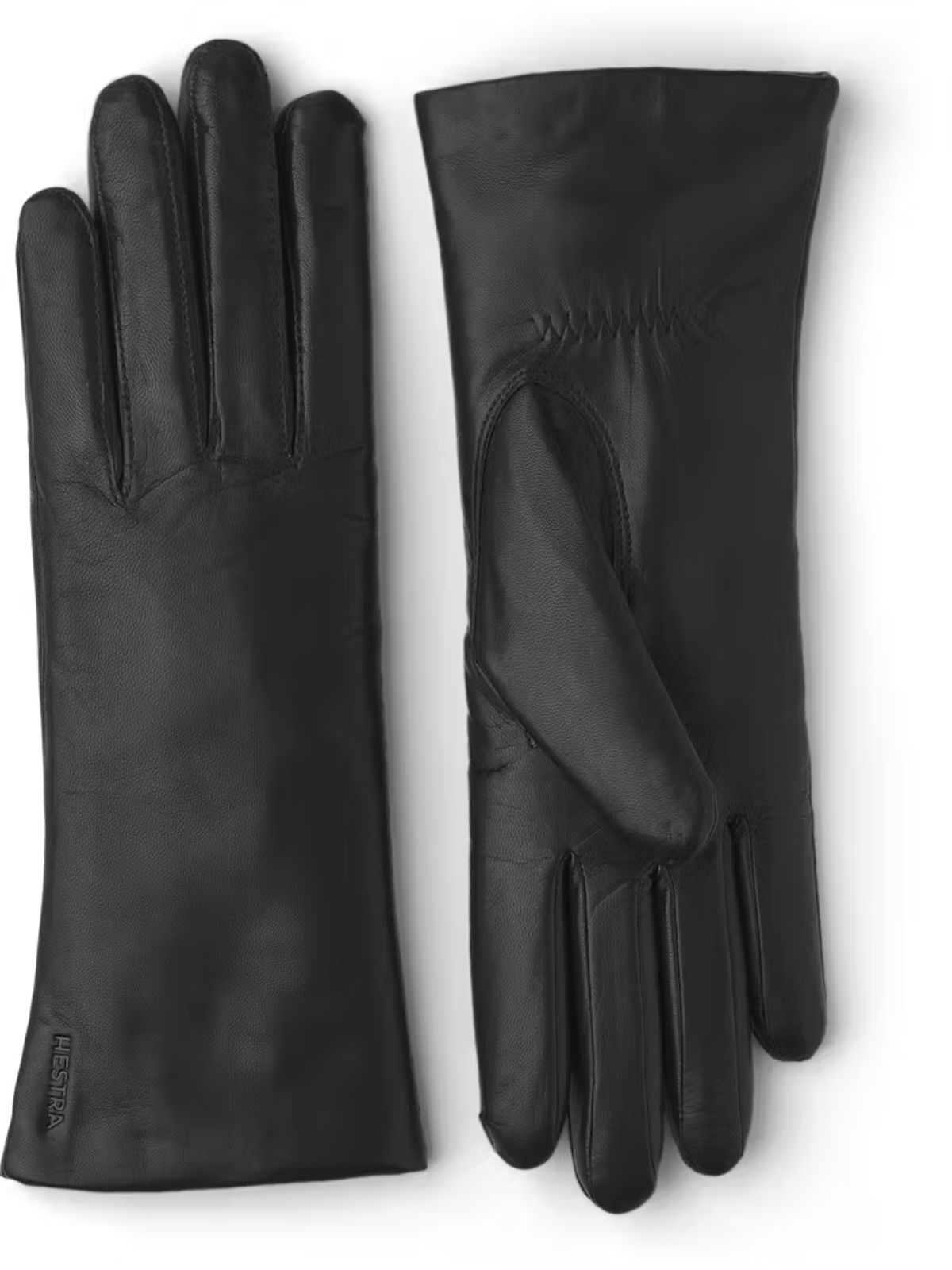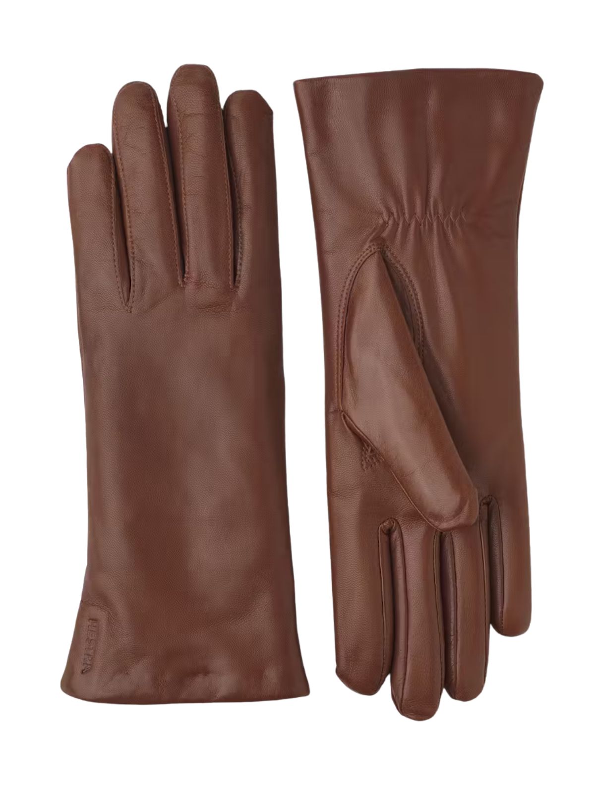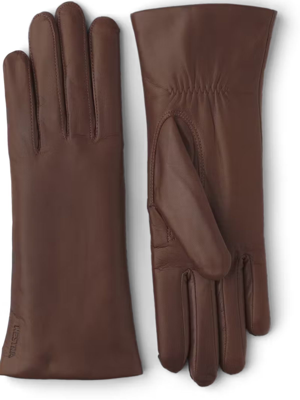 Stilfuld minimalistisk skindhandske fra HESTRA designet med et blødt, strikket uldfor. Handsken er syet i smidig italiensk lammenappa med en tætsiddende pasform. Et klassisk modetilbehør, der vil løfte dit outfit til hverdagsbrug og ved særlige lejligheder.Farver: 100 SORT, 760 CHESTNUT
