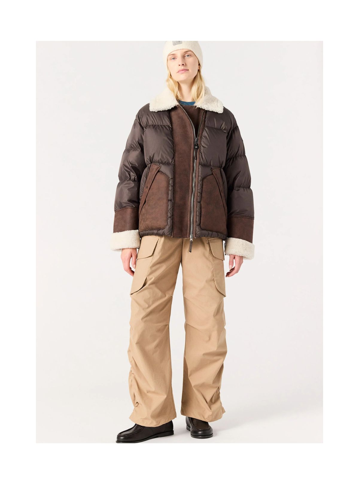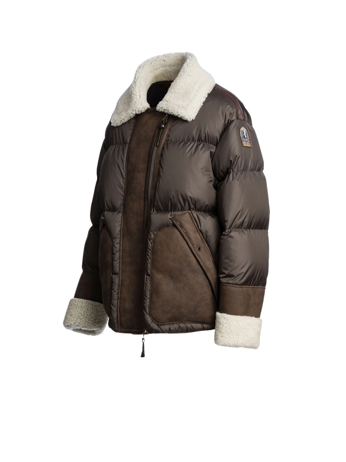 Sporty og cool Chyna kort puffer dunjakke fra PARAJUMPERS lavet af genbrugt polyestertaft kombineret med lammeskind fra Mixed Shearling Puffer-familien. Den raffinerede kombination af materialer gør den perfekt til både bymiljøer og raffinerede vinterferier i bjergene. Jakken har asymmetrisk kraftig lynlås lukning, lammeskinds krave med revers samt store lommer på fronten og lammeskinds manchetter.Sæson: Efterår / Vinter