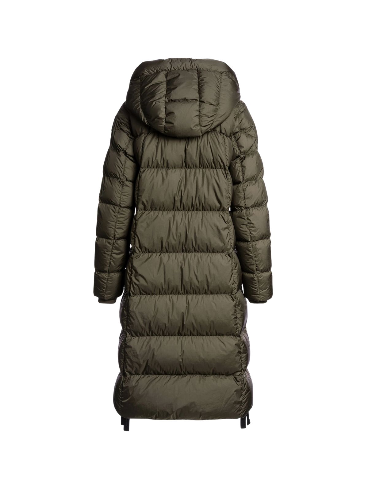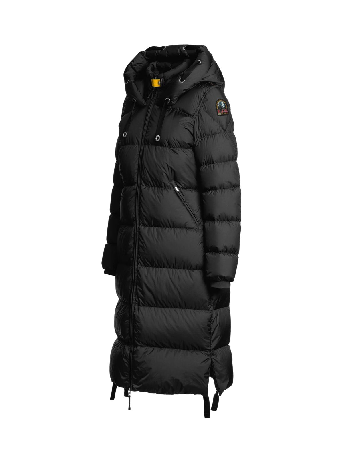Panda er en ekstra lang dunjakke fra PARAJUMPERS. Jakken er lavet af 15-denier nylon micro ripstop med en vandafvisende belægning. Foringen er af genanvendt 20-denier nylon taffeta, som er dun-sikkert og let. Jakken har en tovejs lynlås, to ydre lynlåslommer og to indre mesh-lommer for praktisk opbevaring. Den har elastiske ribbede manchetter, justerbare hætte og slidser i siden med snøre. Jakken har de karakteristiske Parajumpers-patch og den ikoniske gule tape ved halsen.Sæson: Efterår / Vinter