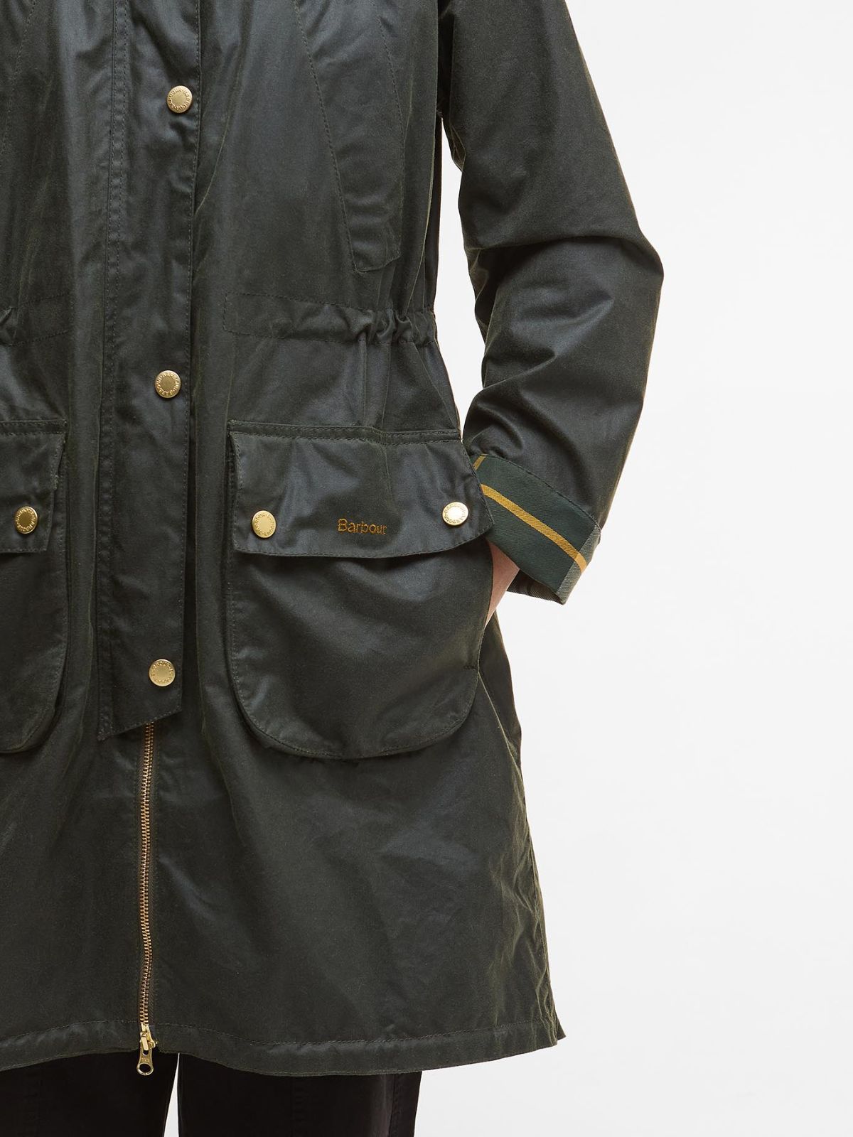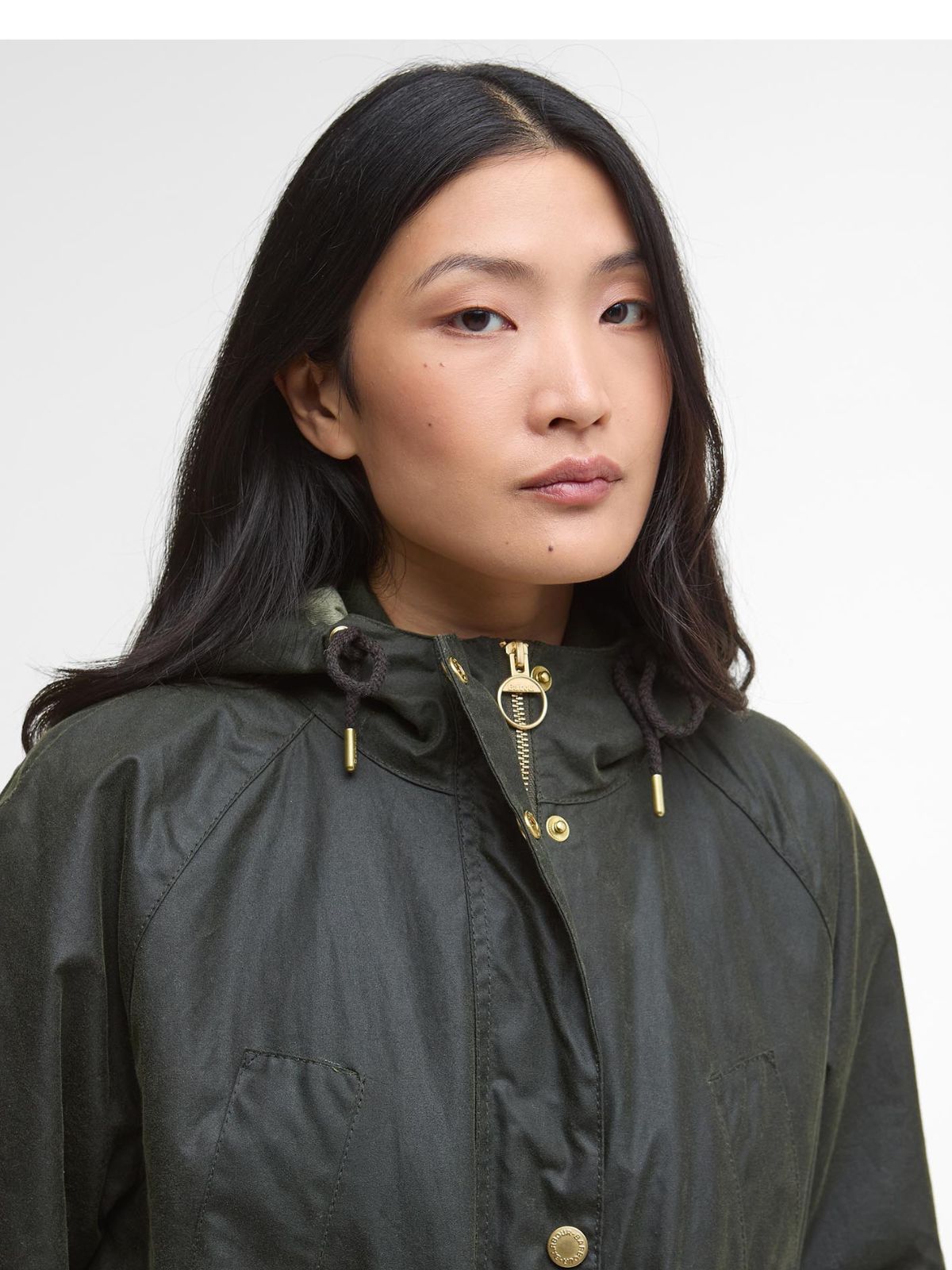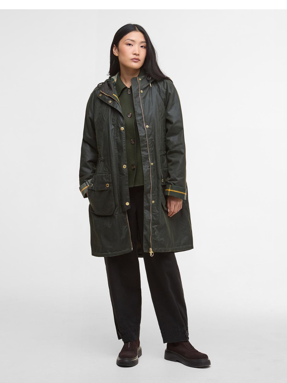 Barbour Marcy Waxed Parka en tidløs klassiker, der er gentænkt til al slags vejr. Jakken er designet med et varmt tartanfor, praktiske lommer, lynlås lukning samt ekstra vindfang med trykknapper og en hætte til at trodse selv de hårdeste vinde, Dette tilføre denne jakke ubesværet stil med uovertruffen komfort.Sæson: Efterår / Vinter