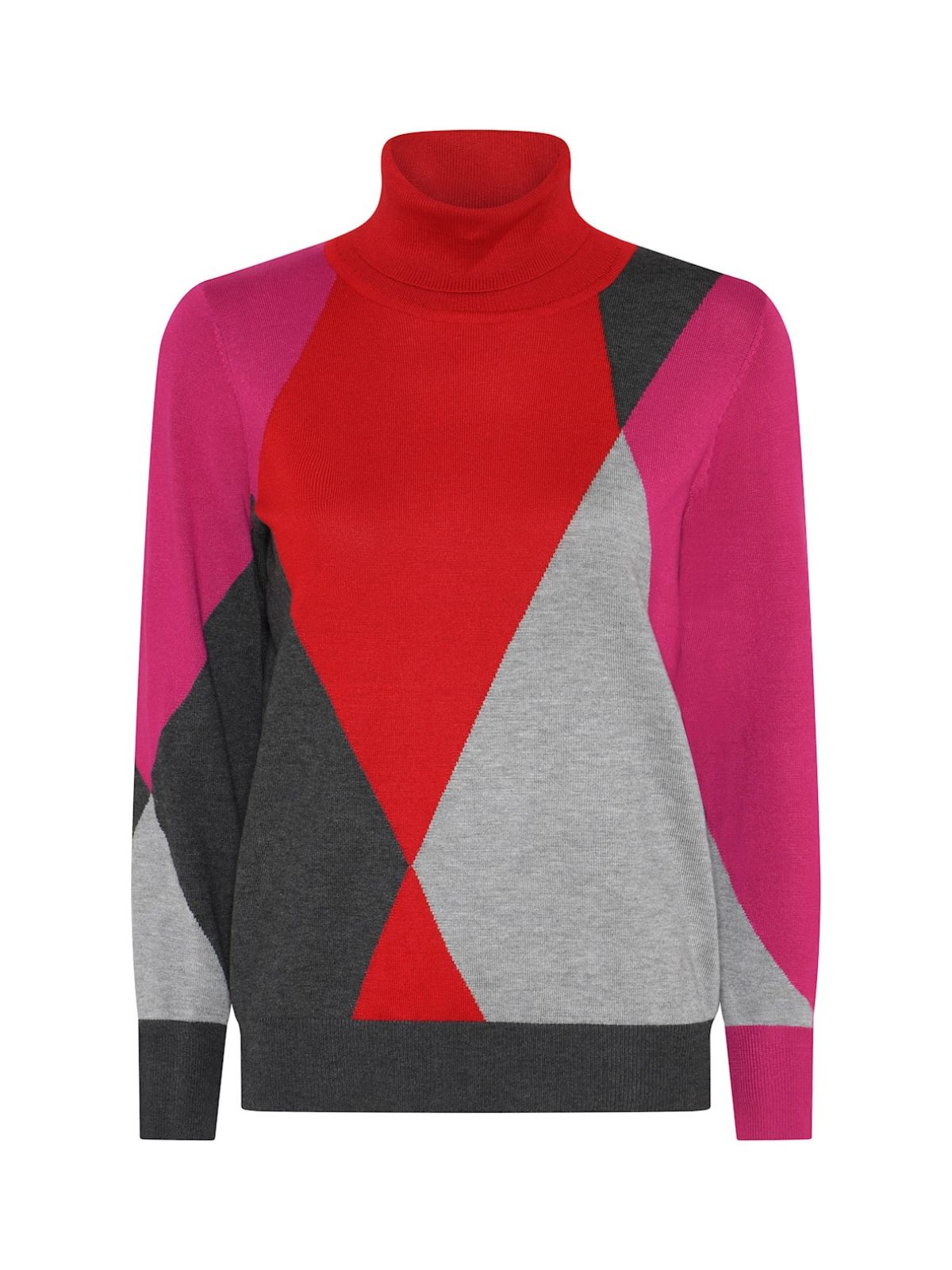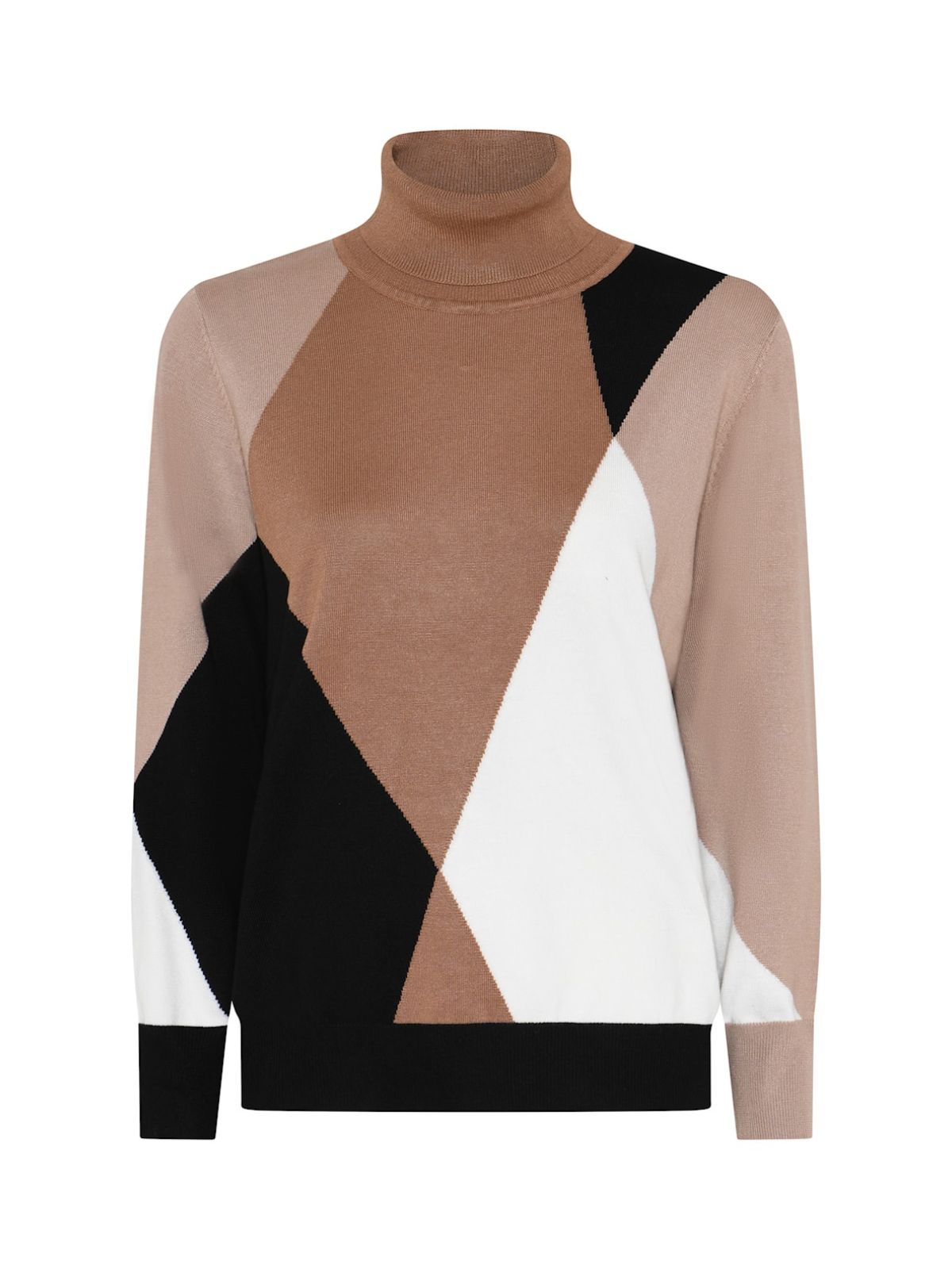 Strik med høj hals fra Micha. Strikken har lange ærmer, block mønster og et regulært fit.Materiale: 70% Viskose (eco vero), 30% Polyamid