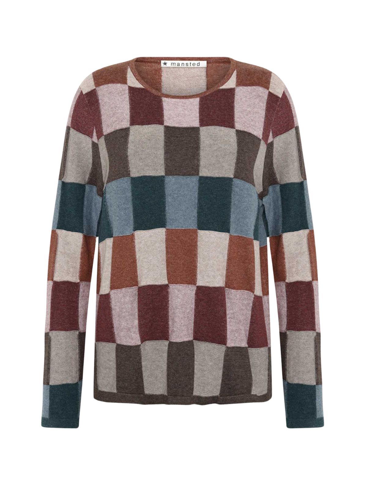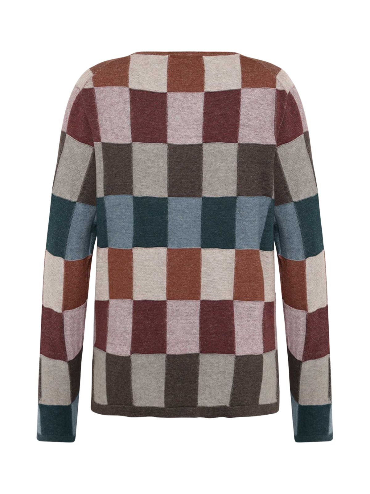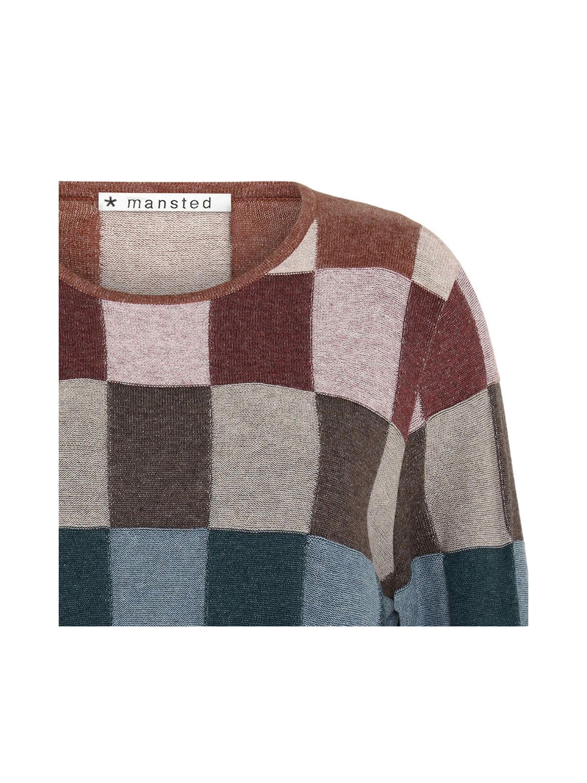 En pullover med et vævet ternet mønster i glatstrik og omvendt struktur. Trøjen har slids i sidesømmene.Materiale: 100% Økologisk bomuld