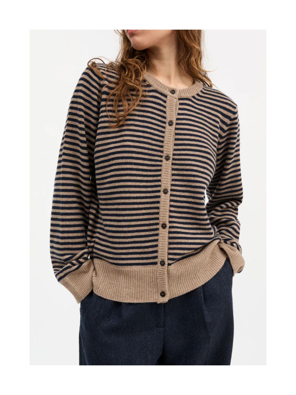 Sporty Senna Cardigan fra SKALL i klassisk design i blød, eksklusiv merinould. Cardiganen har rund hals, rib i bunden og et normalt fit samt i god farvekombination.Længde: ca. 60 cm