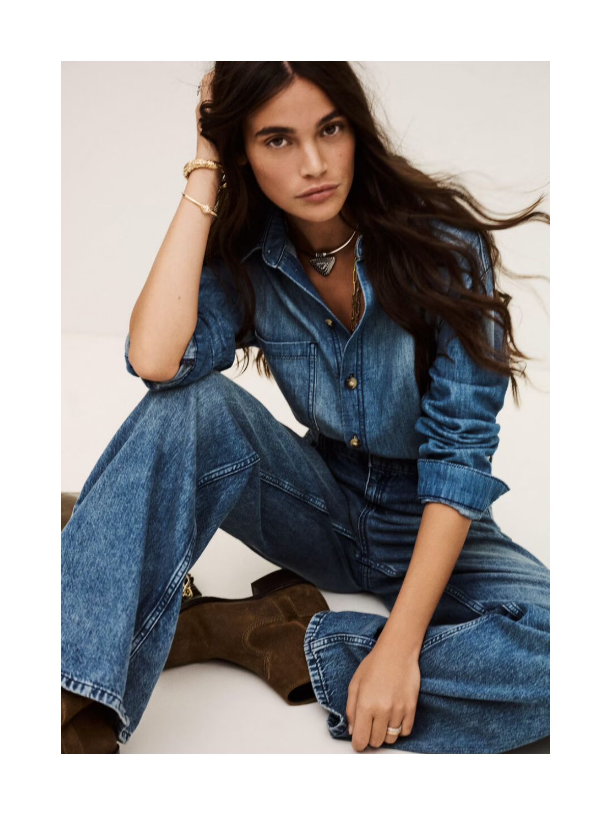 Smart jeans jumpsuit fra BA&SH i cool design med knaplukning og krave, lommer på fronten samt bæltestropper.Farve: 0420 BLÅ