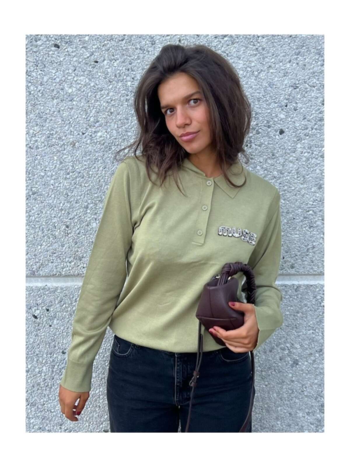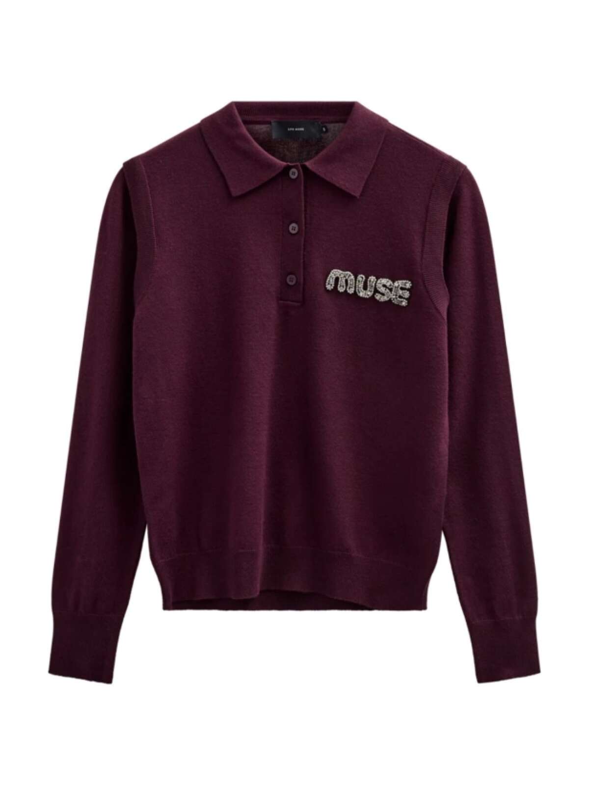 Langærmet poloshirt i eksklusiv, finstrikket kvalitet med ribkanter. Pyntet med en elegant logodetalje på brystet, dekoreret med pailletter og små similisten for et sofistikeret touch.