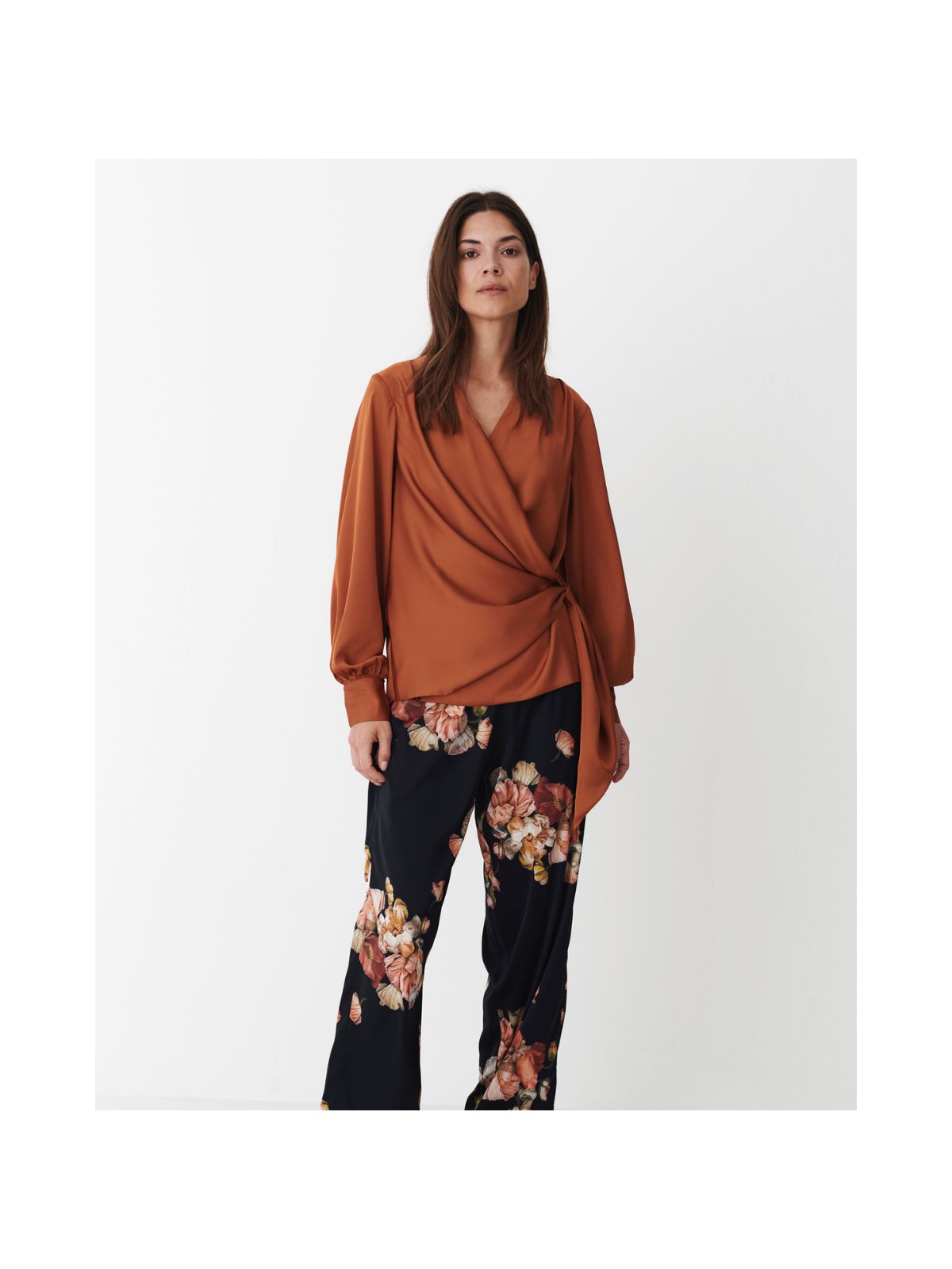 Femininitet og elegance kendetegner den klassiske Ines bluse. Den blødt draperede halsudskæring og det satinbånd i taljen fremhæver smukt dine kurver, mens de lange ærmer med brede manchetter fuldender designet. Fremstillet i maskinvaskbar og rynkebestandig jacquardvævet satin – perfekt til både hverdag og festlige lejligheder.Materiale: 50% Satinvævet genanvendt polyester, 42% Polyester