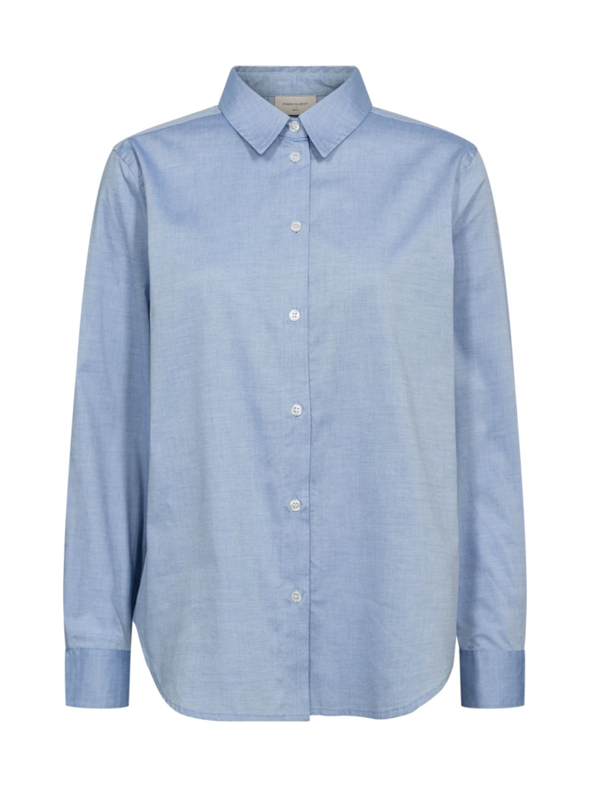 Skjorte fra Freequent i en blød og behagelig kvalitet, designet i et tidløst klassisk snit. Modellen har knaplukning foran, lange ærmer med manchet og en fin krave, der gør den nem at style til både hverdag og kontor.Materiale: 100% Bomuld