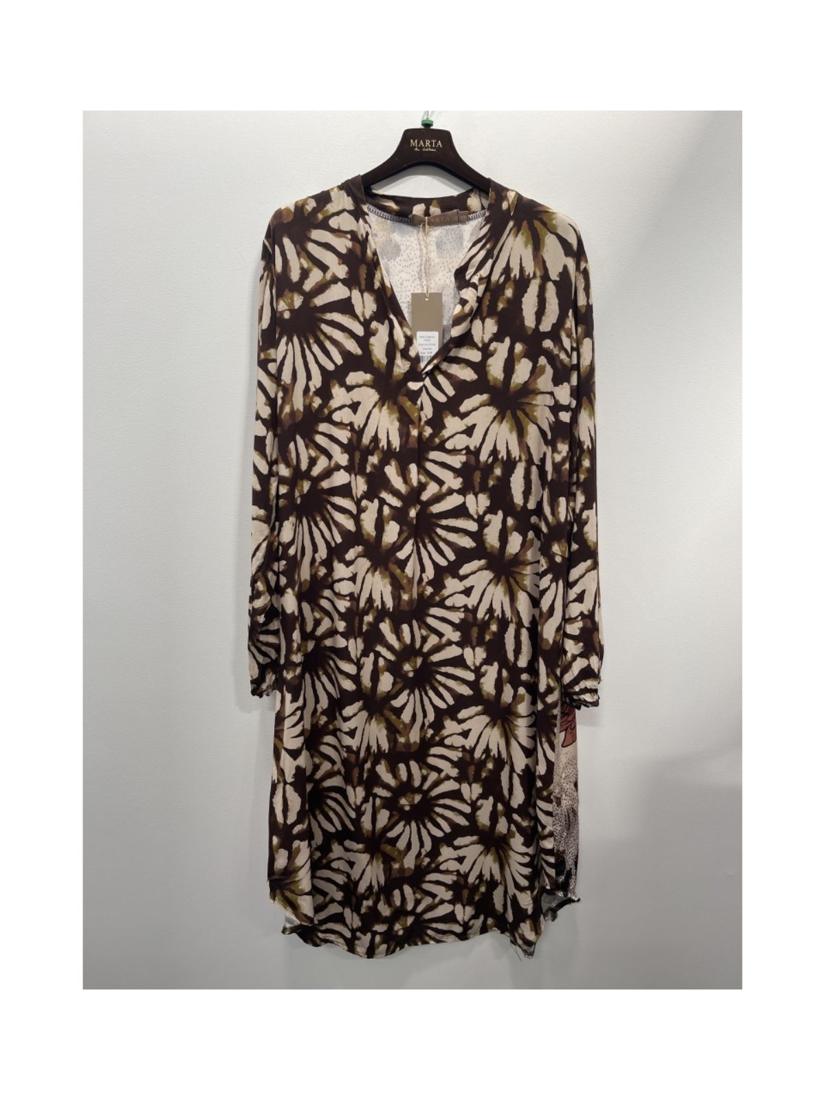 Kjole med flot print fra Marta Du Chateau. Kjolen har lange ærmer, V-udskæring og flot print både foran og bagpå.Materiale: 60% Viskose, 40% Polyester