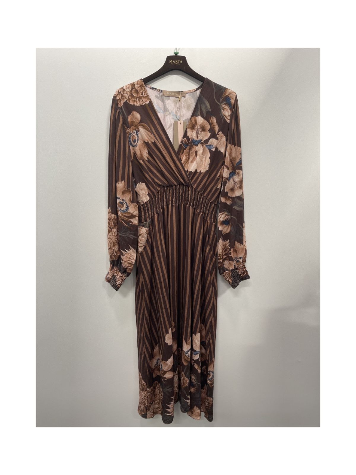 Feminin kjole fra Marta Du Chateau. Kjolen har en dyb V-udskæring, lange ærmer med elastik, elastik i taljen og et flot fald i skørtet.Materiale: 100% Viskose