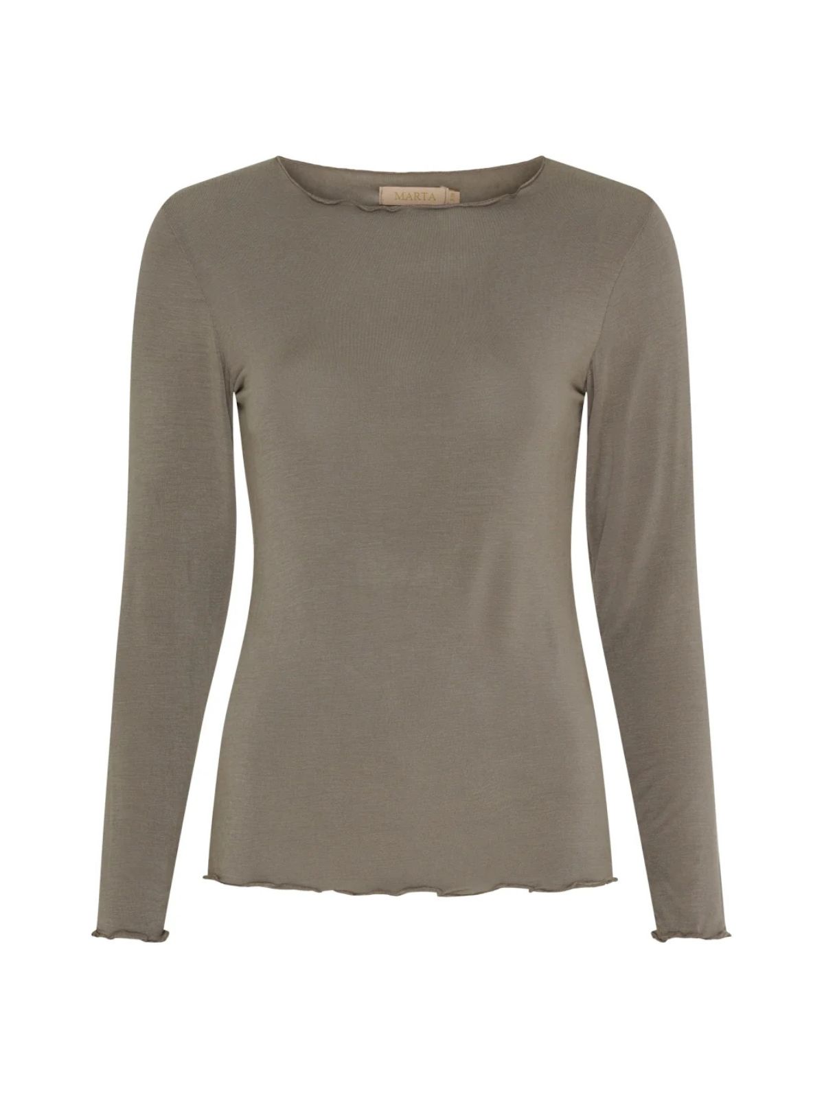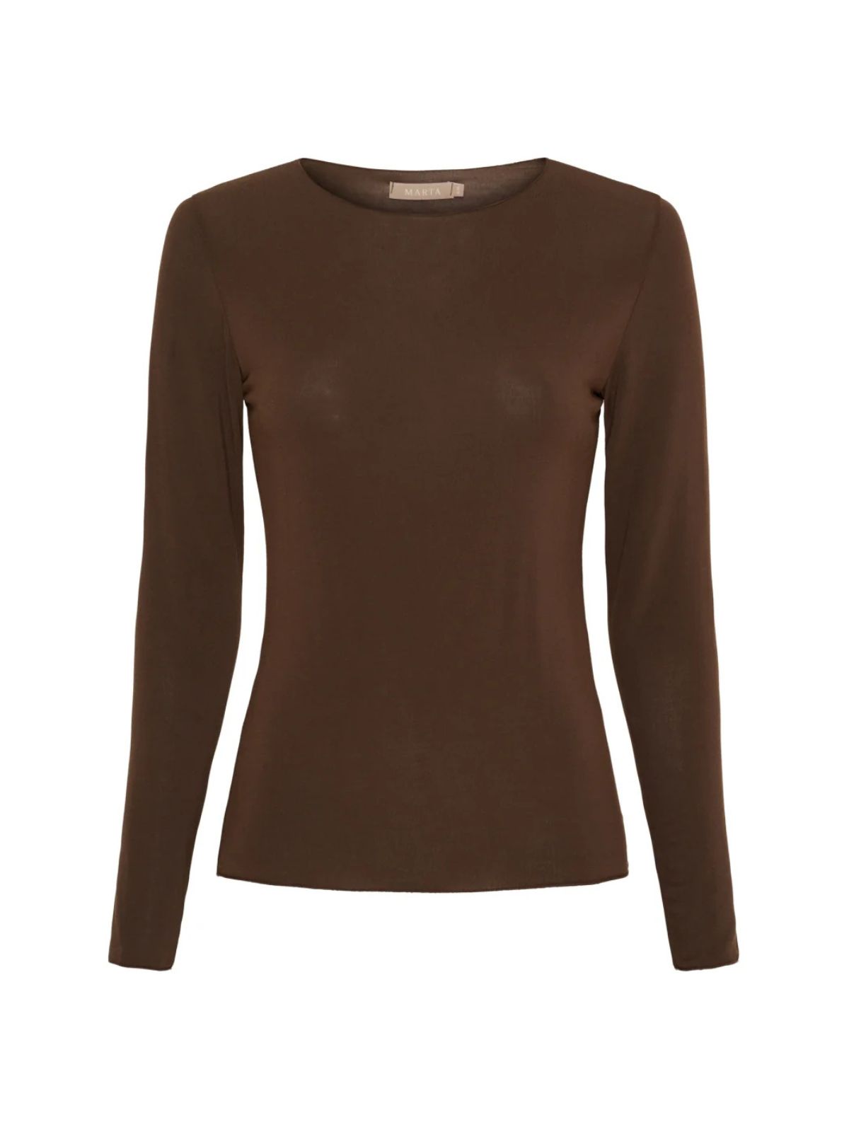 Basis langærmet bluse fra Marta Du Château i en blød og behagelig kvalitet. Blusen er tætsiddende og fungerer som et uundværligt basislag i enhver garderobe, perfekt til både hverdagsbrug og under lag-på-lag looks.