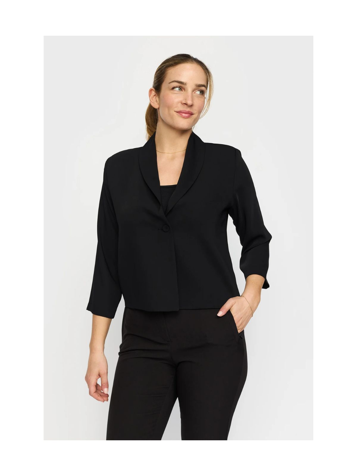 En smuk og elegant blazer med trekvartærmer og klassisk knappelukning. En stilfuld tilføjelse til garderoben, der kan bruges både til hverdag og særlige anledninger.Modellen er 176 cm høj og bærer str. medium.