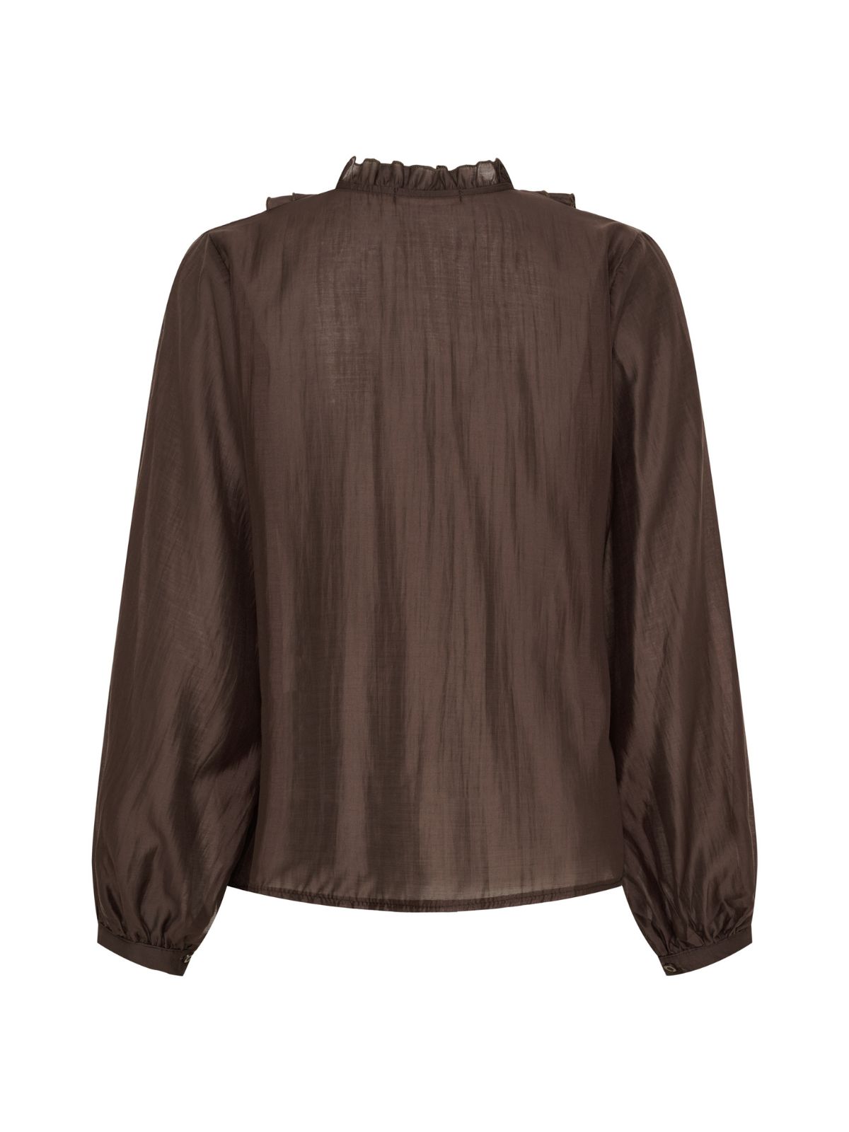 Elegant bluse fra Marta Du Chateau med feminine flæsedetaljer, lange ærmer og V-udskæring. En alsidig style, der nemt kan dresses op med en nederdel for et sofistikeret look – eller tones ned med jeans og sneakers til et mere afslappet udtryk.Materiale: 85% Lyocel, 15% Polyester