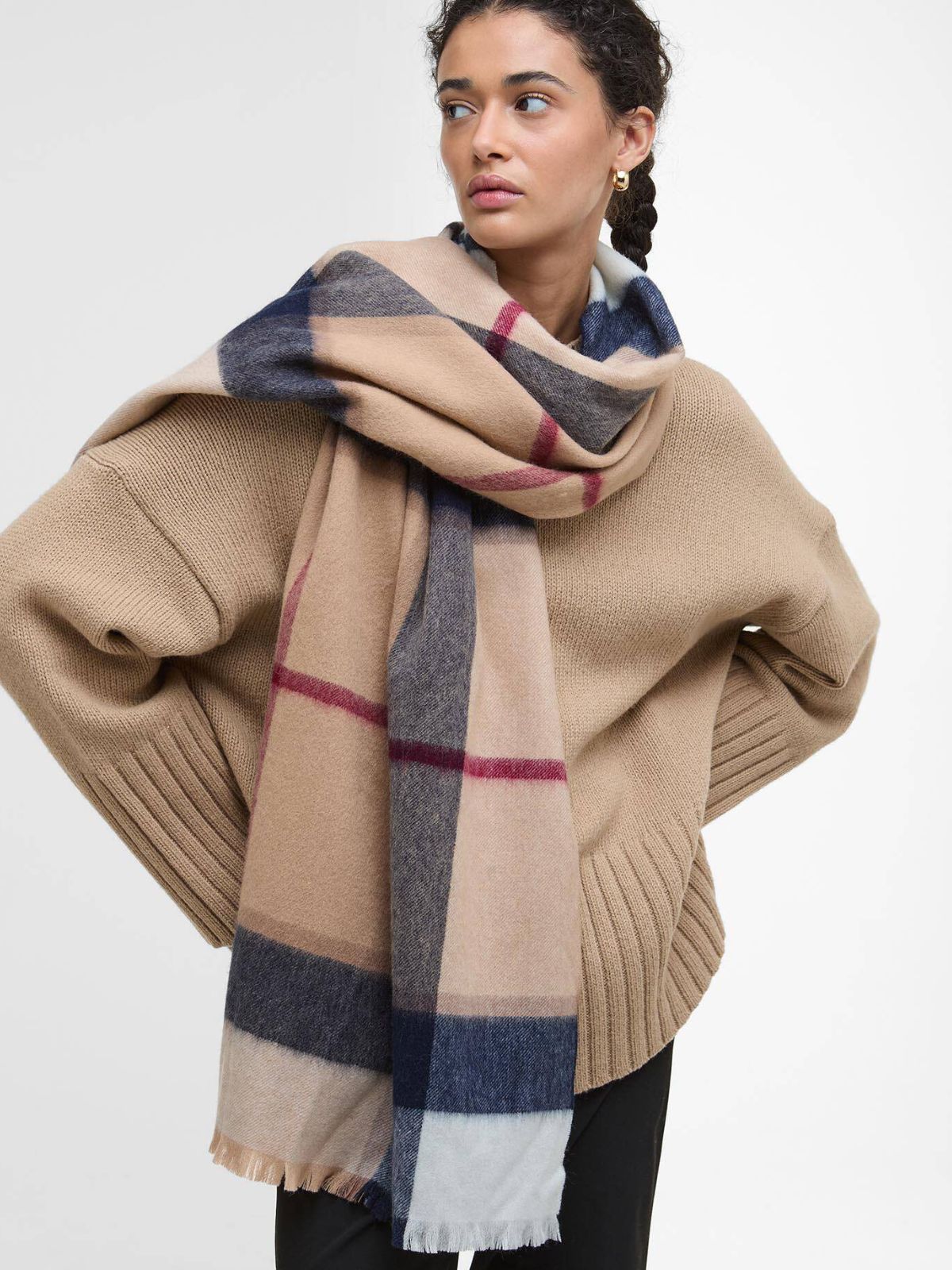 Barbour Rosefield Tartan-tørklædet er fremstillet af luksuriøs lammeuld og har et overdimensioneret tartandesign med kvastfinish. Dette tørklæde er perfekt til at tilføje et sofistikeret lag til ethvert outfit og har et vævet Barbour-mærke på bagsiden.Mål: Bredde: 50 cm, længde: 180 cm.