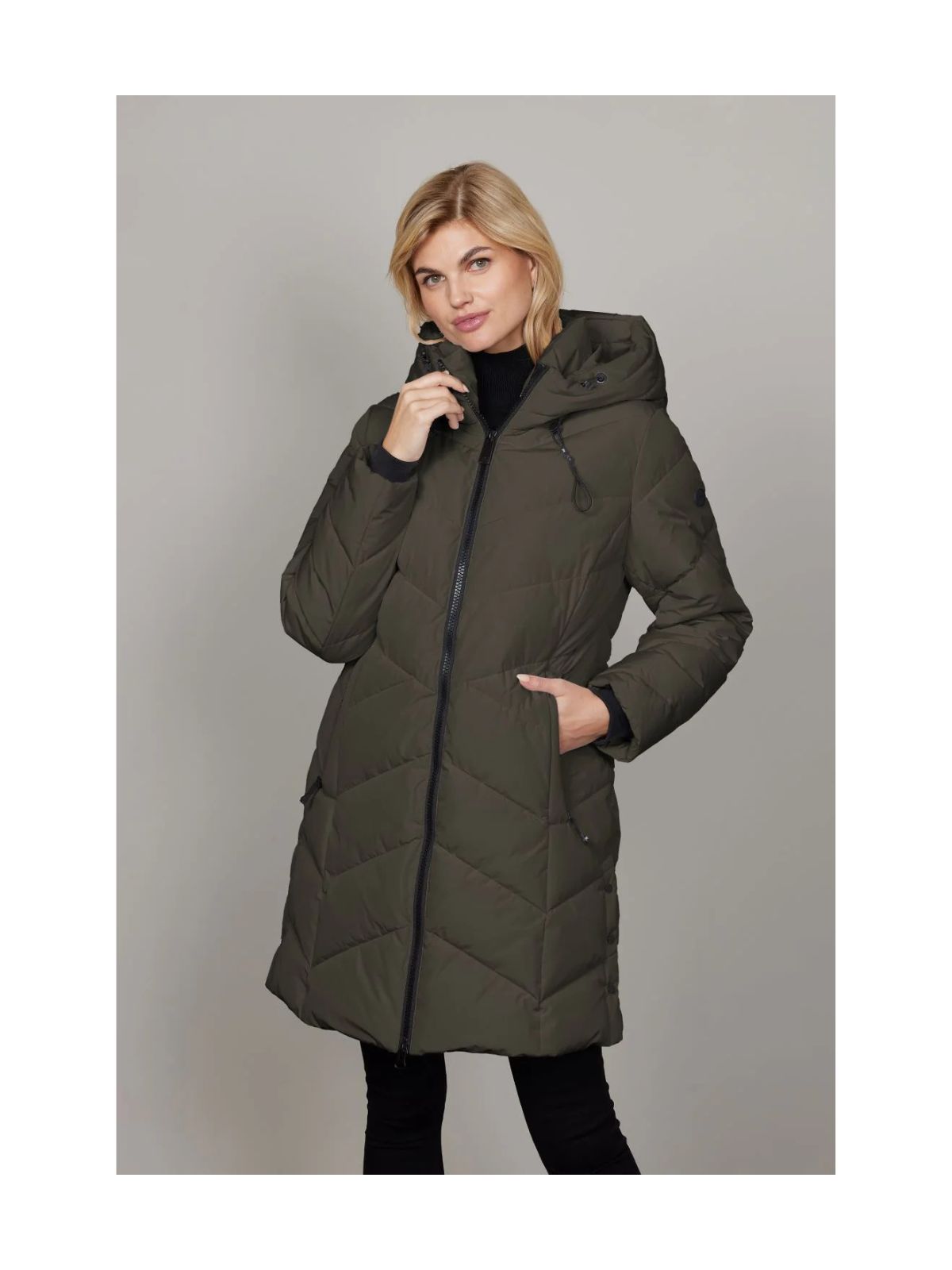 En elegant quiltet jakke med moderne dunlook og diagonalt quiltmønster, der skaber et stilrent og nutidigt udtryk. Jakken har rummelig hætte med snøre og afrundede detaljer for funktionel komfort. Fyldet består af Sorona® – et let, åndbart og miljøvenligt dunalternativ, som sikrer varmeisolering. Stoffet er vindtæt og vandafvisende (3000 mm) med høj åndbarhed, perfekt til overgangsvejr og let regn. To-vejs lynlås, slids i sidesømmen med trykknapper samt paspolerede lommer med varmt foer og praktisk inderlomme gør jakken både stilfuld og funktionel.Materiale: 100% Polyester med TPU-laminering | Foer: 100% Polyester | Fyld: 100% Sorona (dun alternativ)